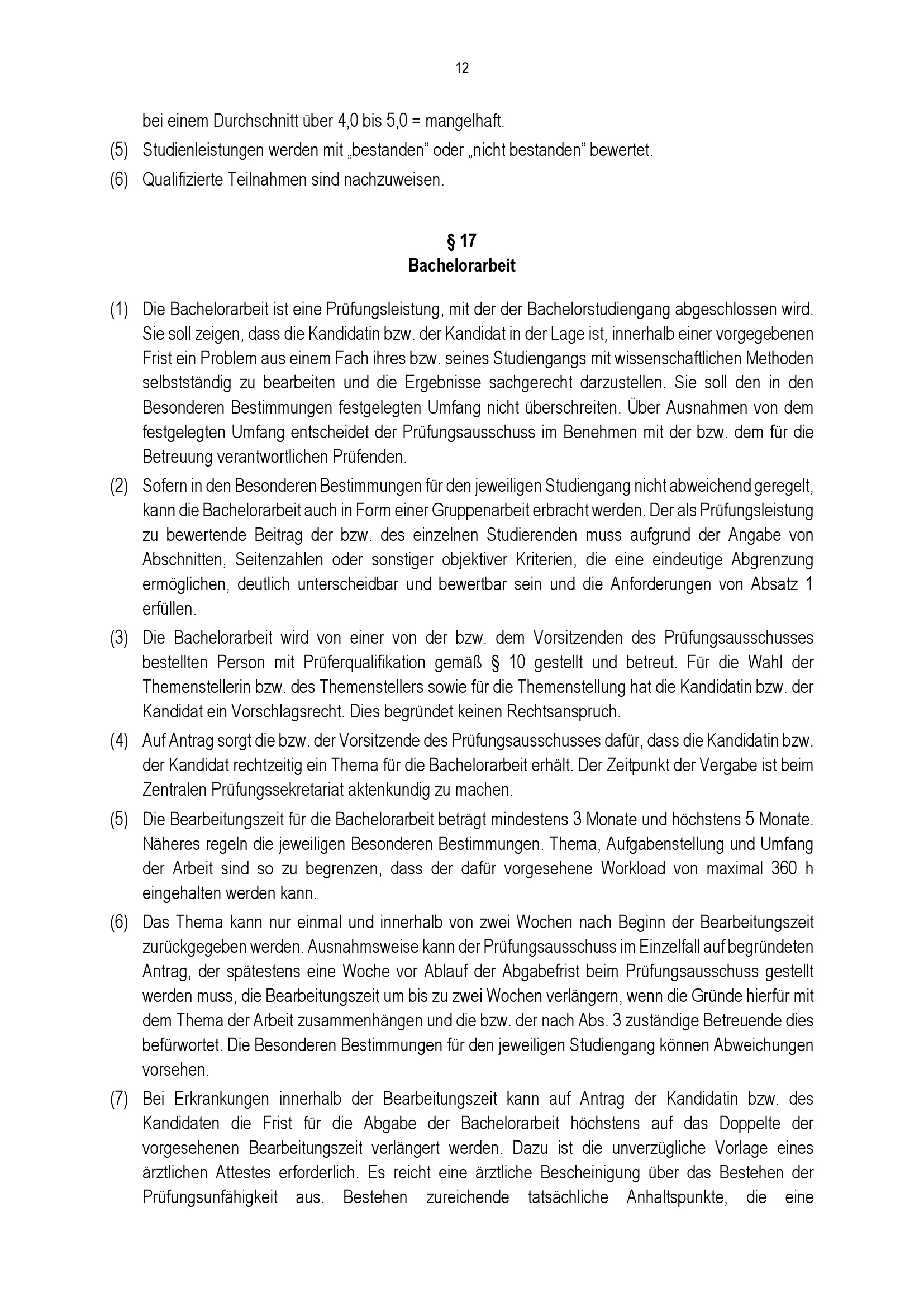 § 17 Bachelorarbeit