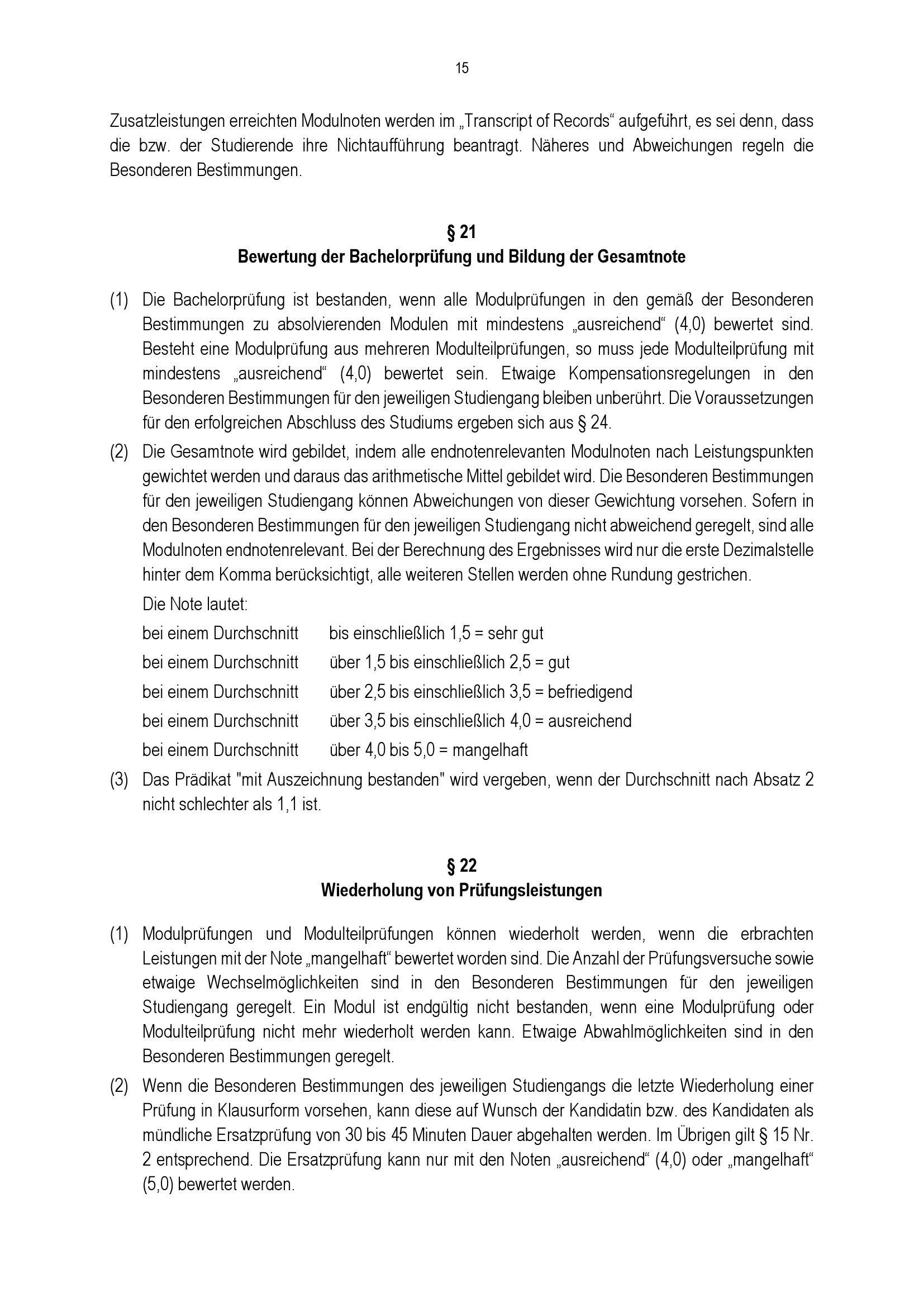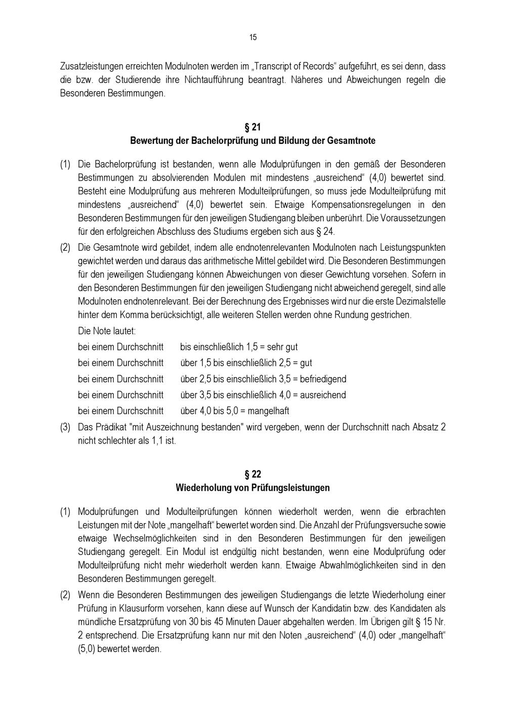 § 21 Bewertung der Bachelorprüfung und Bildung der Gesamtnote