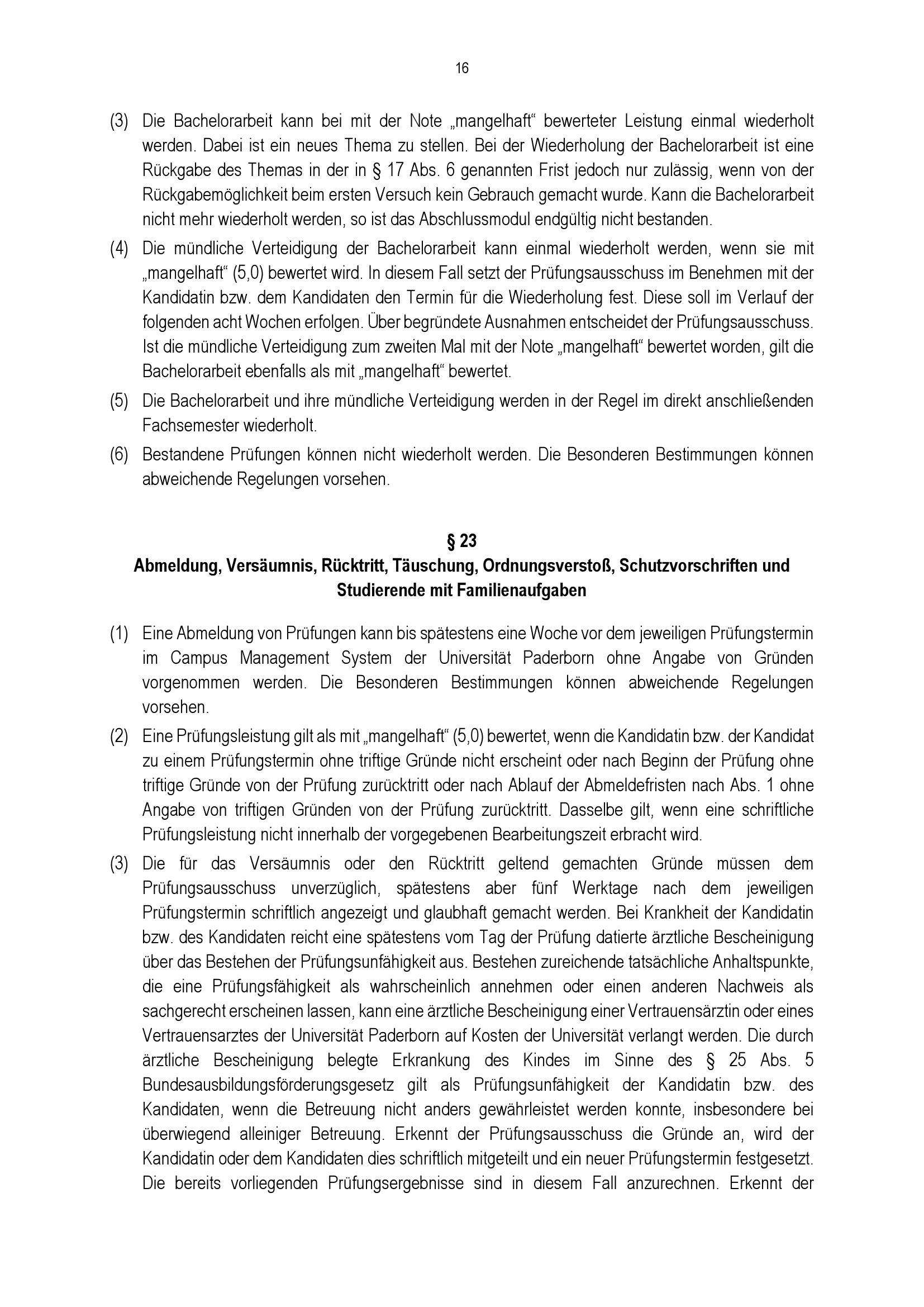 Allgemeine Bestimmungen der Prüfungsordnungen für die Bachelorstudiengänge der Fakultät für Naturwissenschaften an der Universität Paderborn : vom 28. Mai 2021