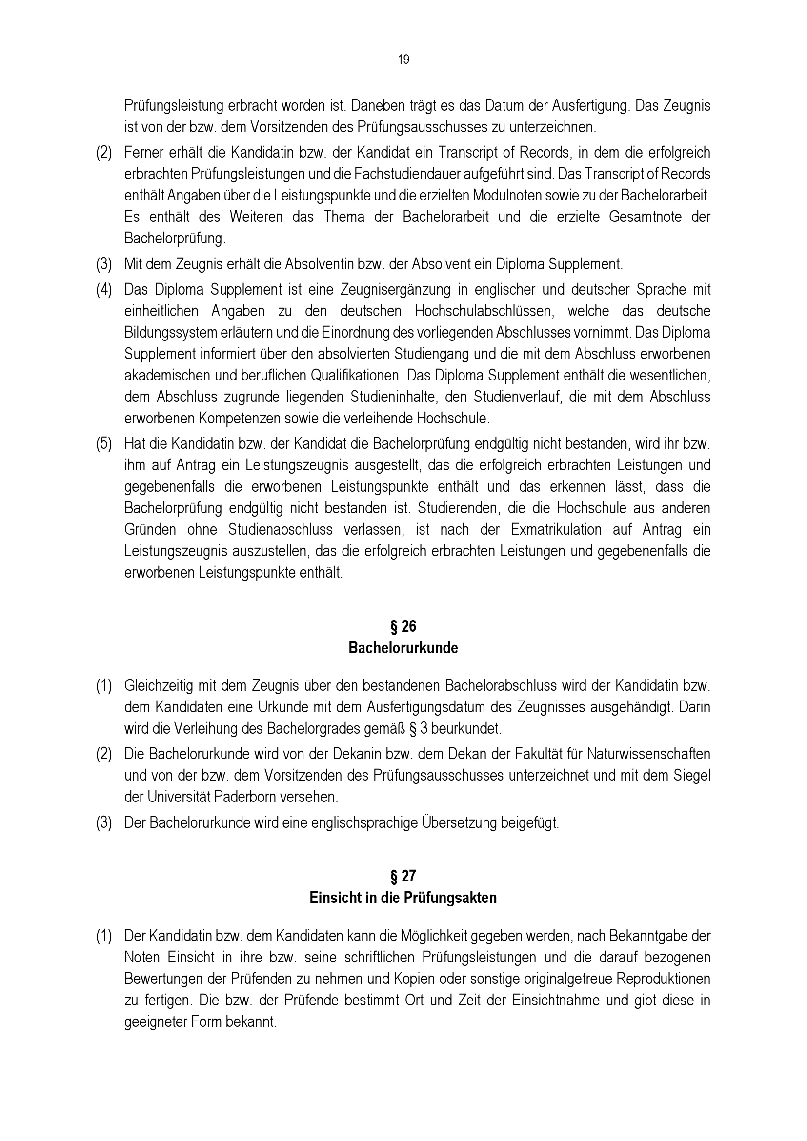 § 26 Bachelorurkunde