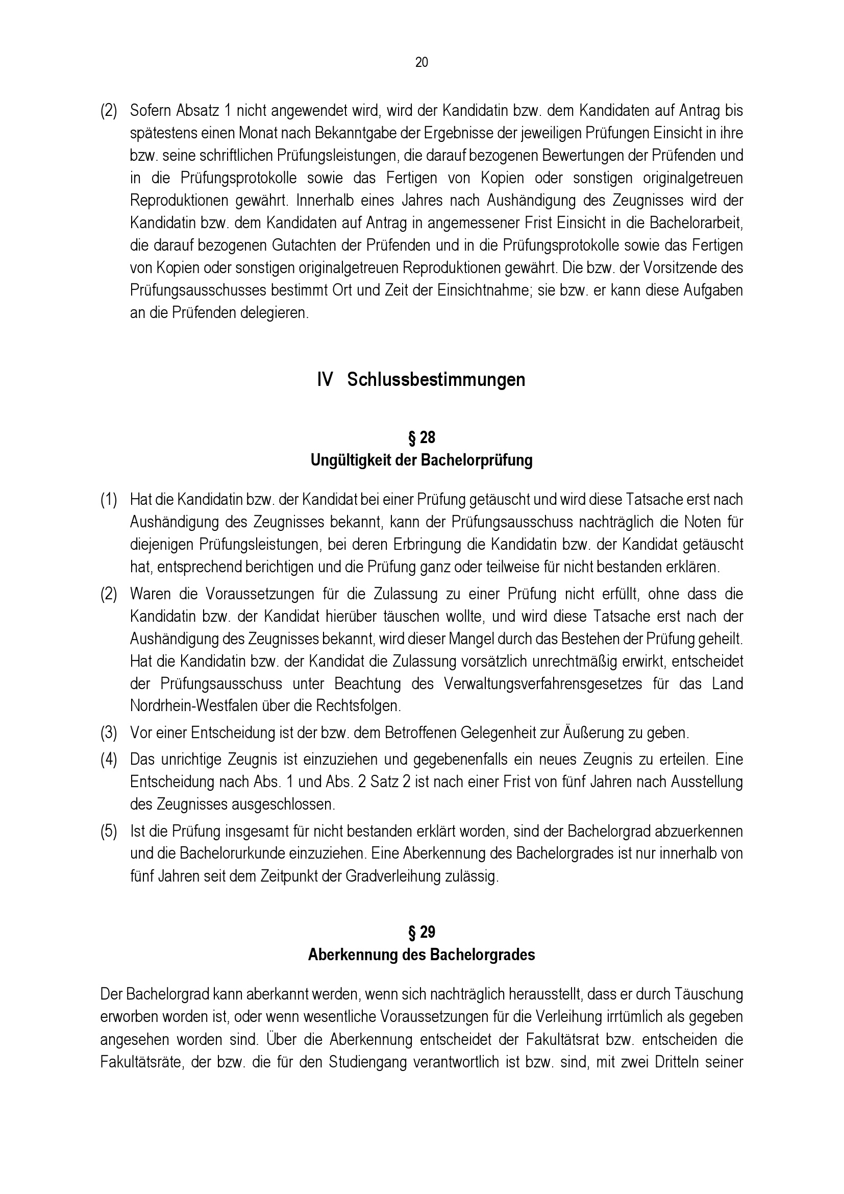 § 28 Ungültigkeit der Bachelorprüfung