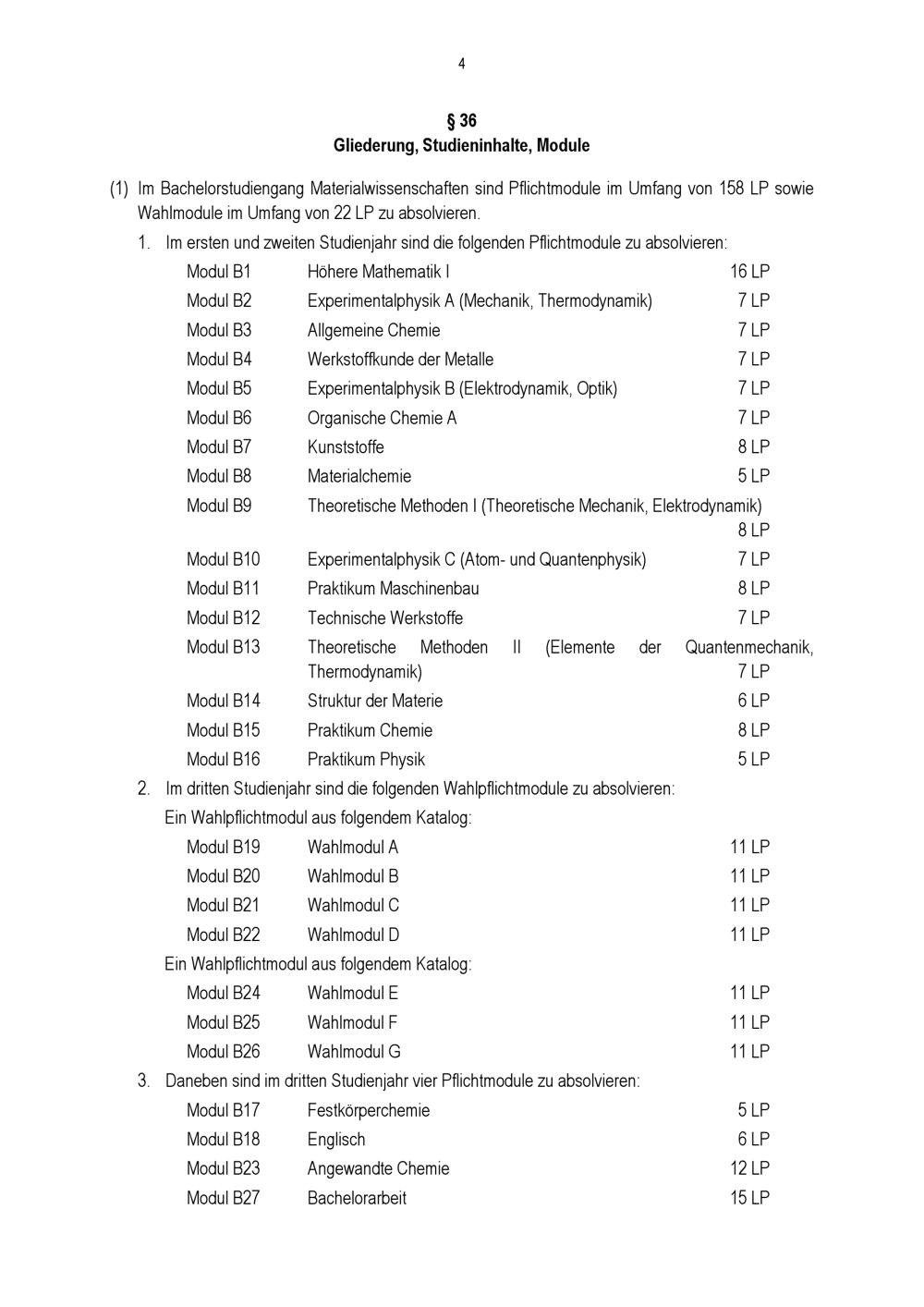 § 36 Gliederung, Studieninhalte, Module