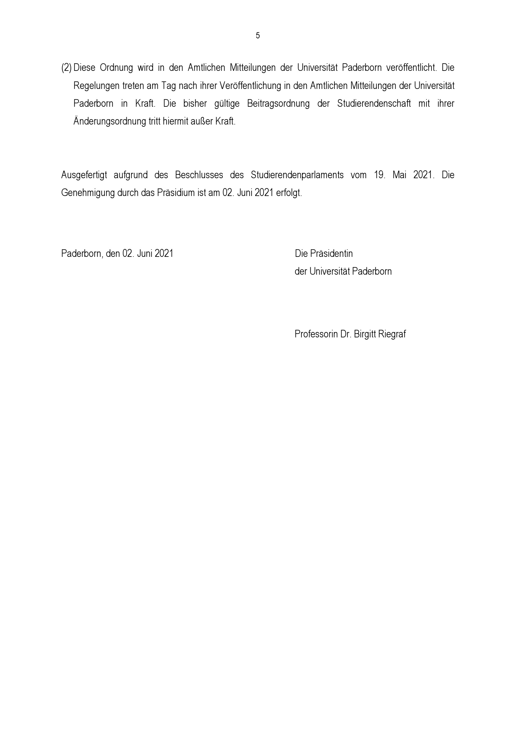 Beitragsordnung der Studierendenschaft der Universität Paderborn : vom 02. Juni 2021
