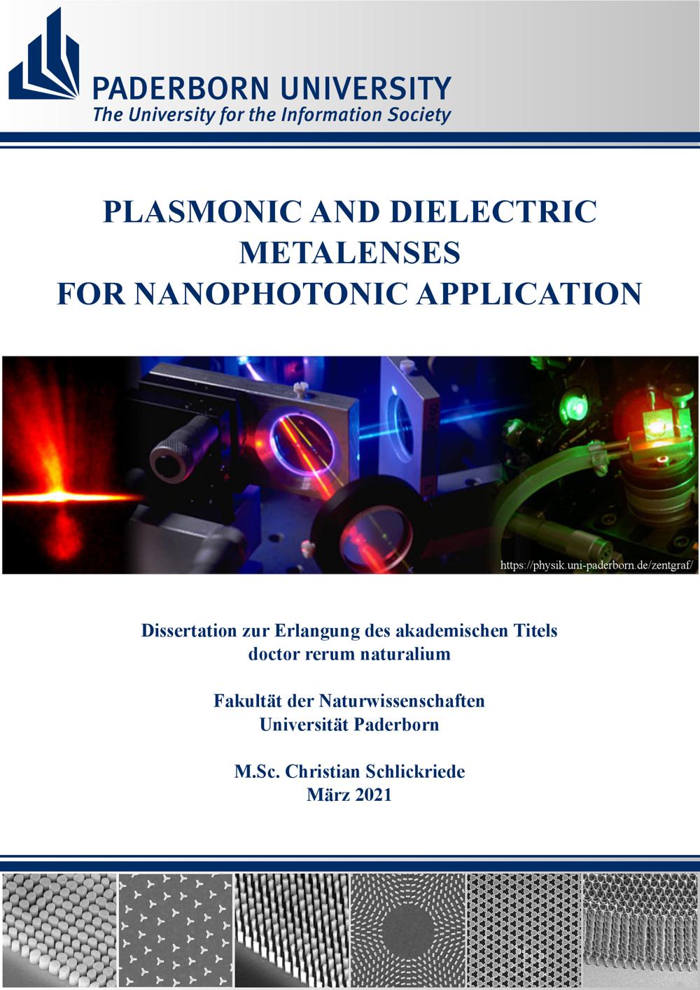 Plasmonic and dielectric metalenses for nanophotonic applications / M.Sc. Christian Schlickriede