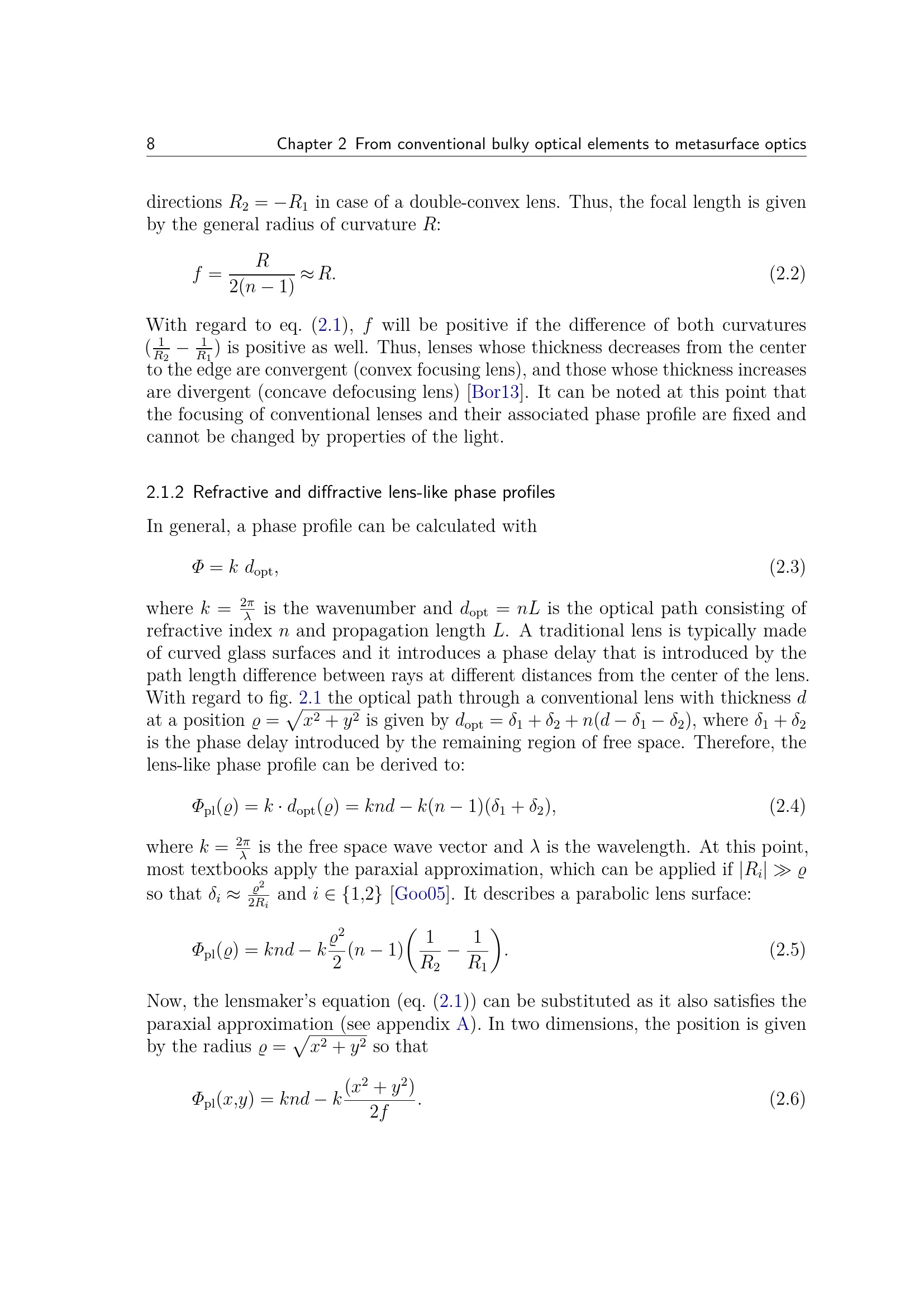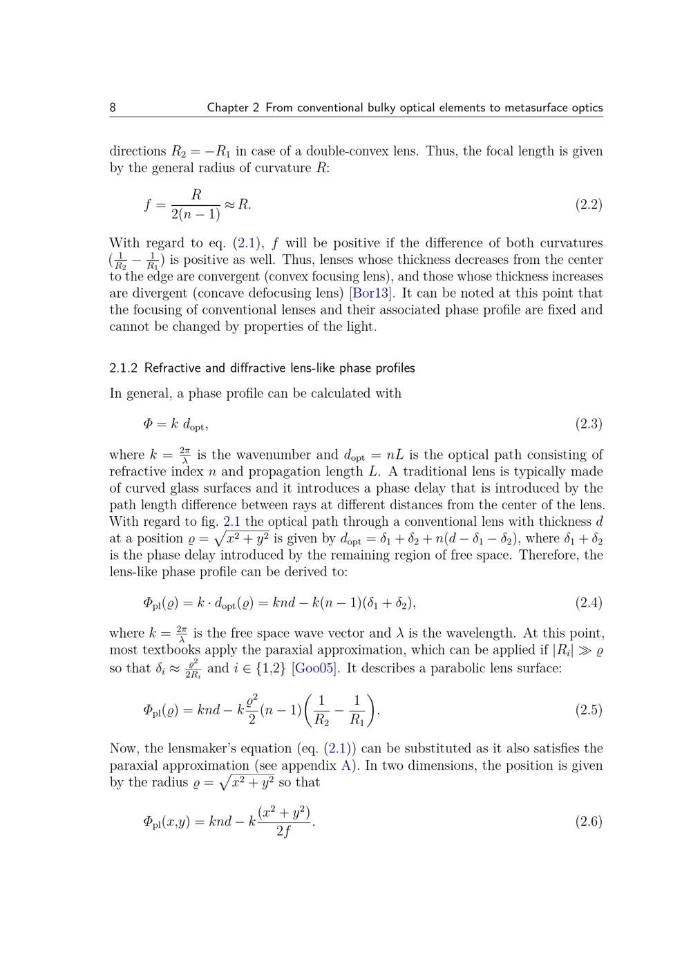 2.1.2 Refractive and diffractive lens-like phase profiles