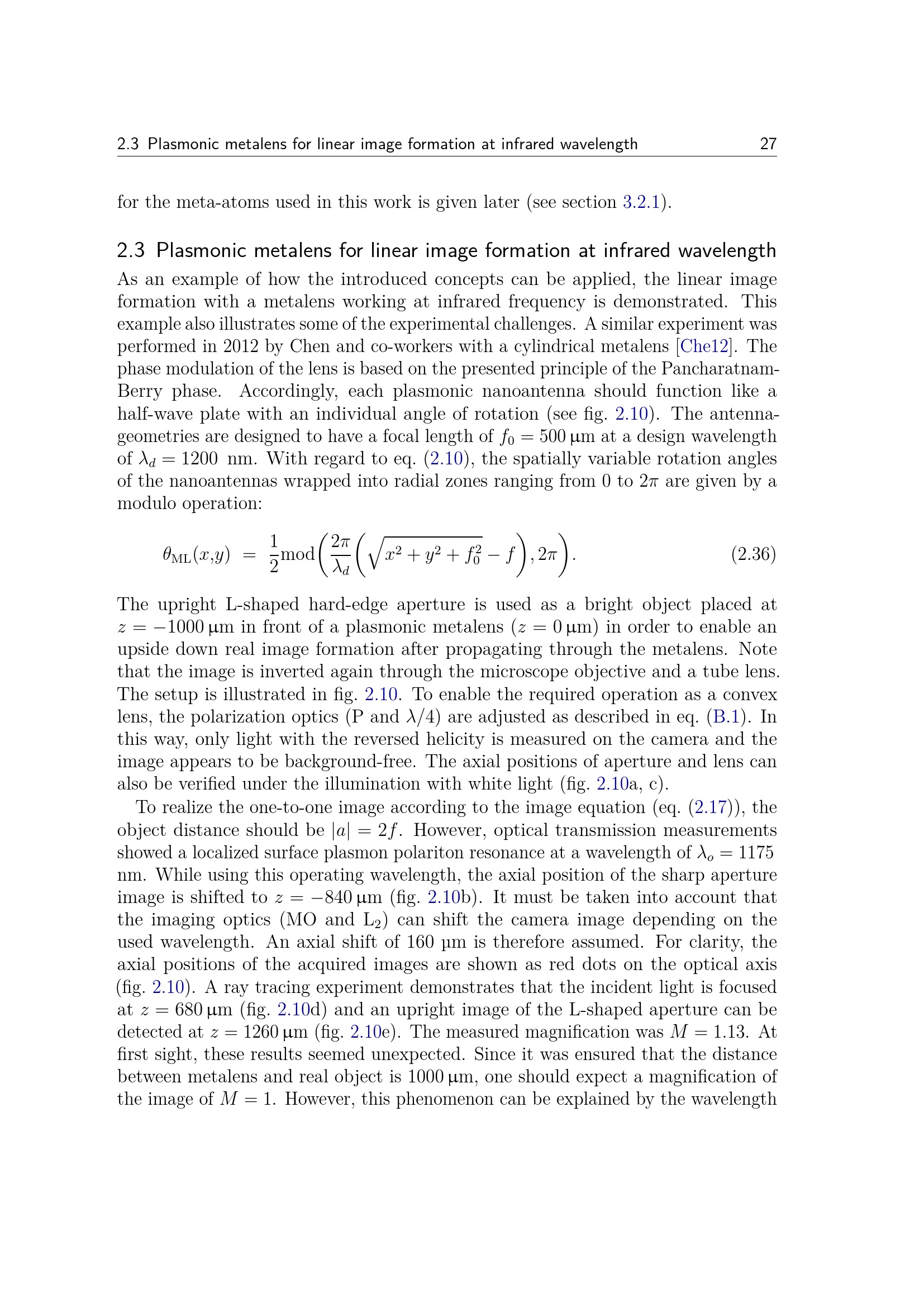 2.3 Plasmonic metalens for linear image formation at infrared wavelength