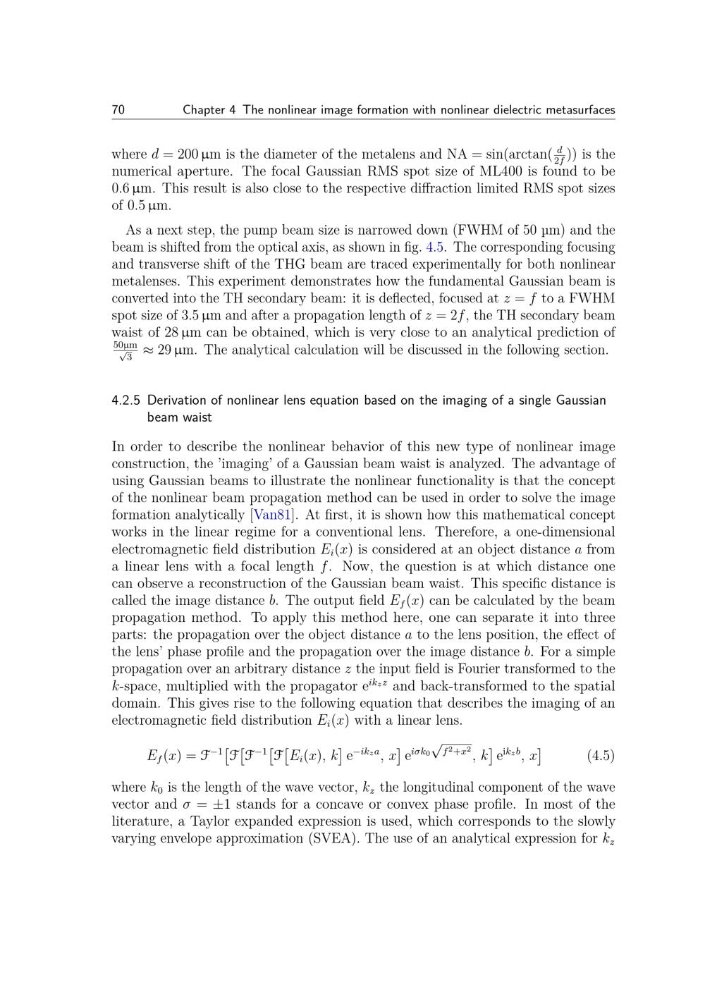 4.2.5 Derivation of nonlinear lens equation based on the imaging of a single Gaussian[...]
