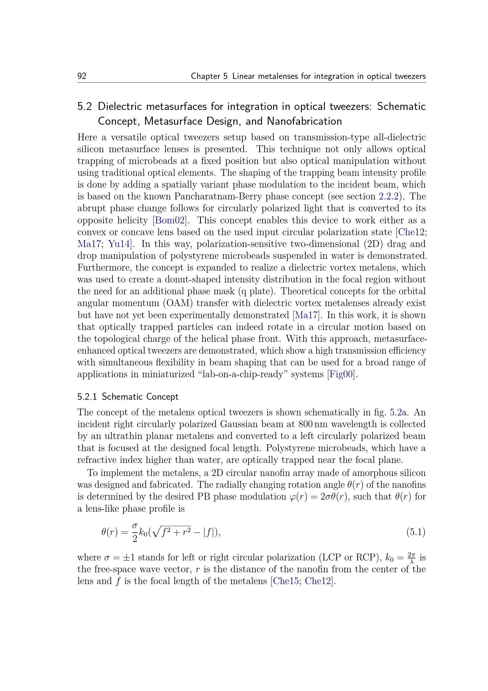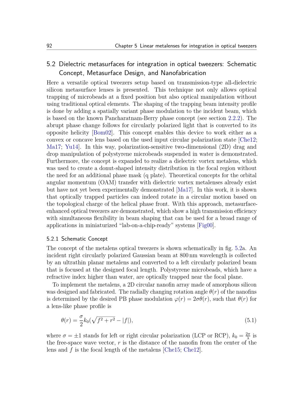5.2 Dielectric metasurfaces for integration in optical tweezers: Schematic Concept,[...]