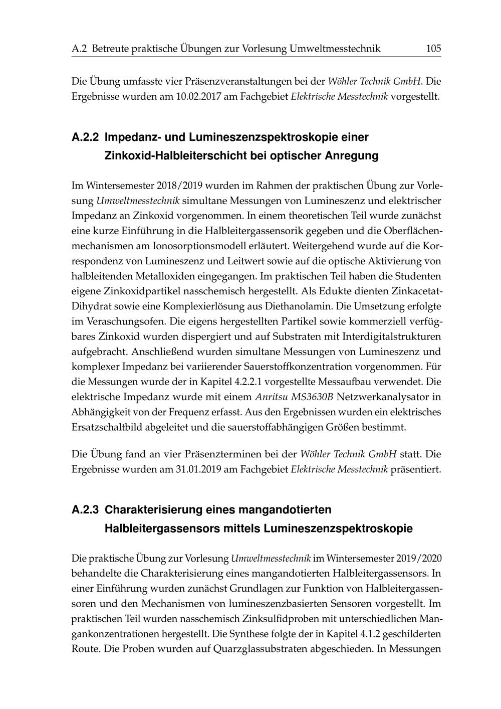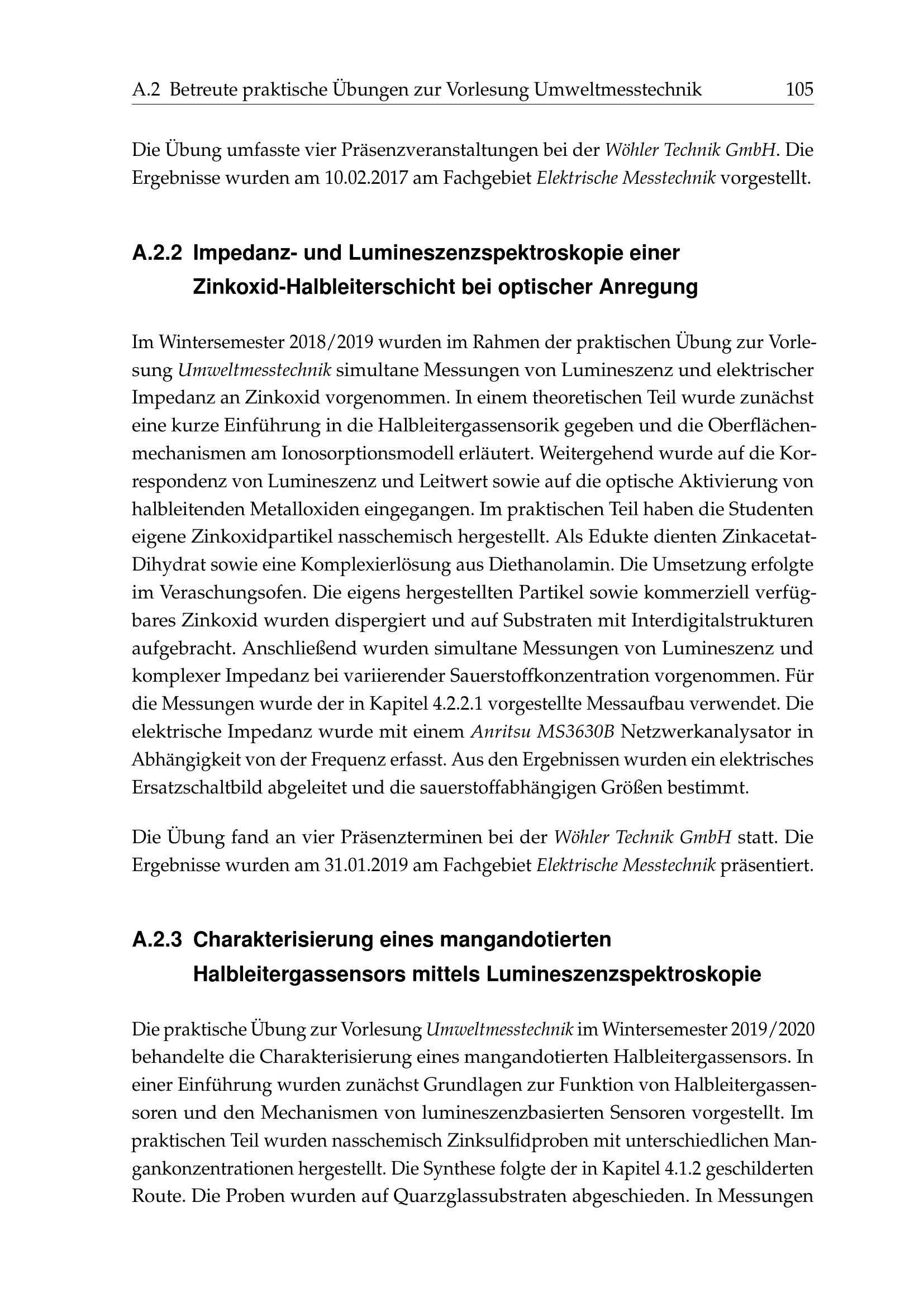 Betreute praktische Übungen zur Vorlesung Umweltmesstechnik