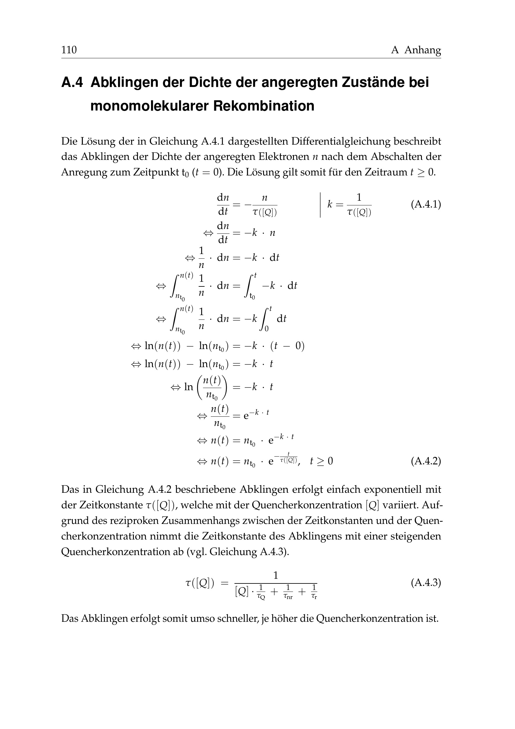 Abklingen angeregter Zustände bei monomolekularer Rekombination