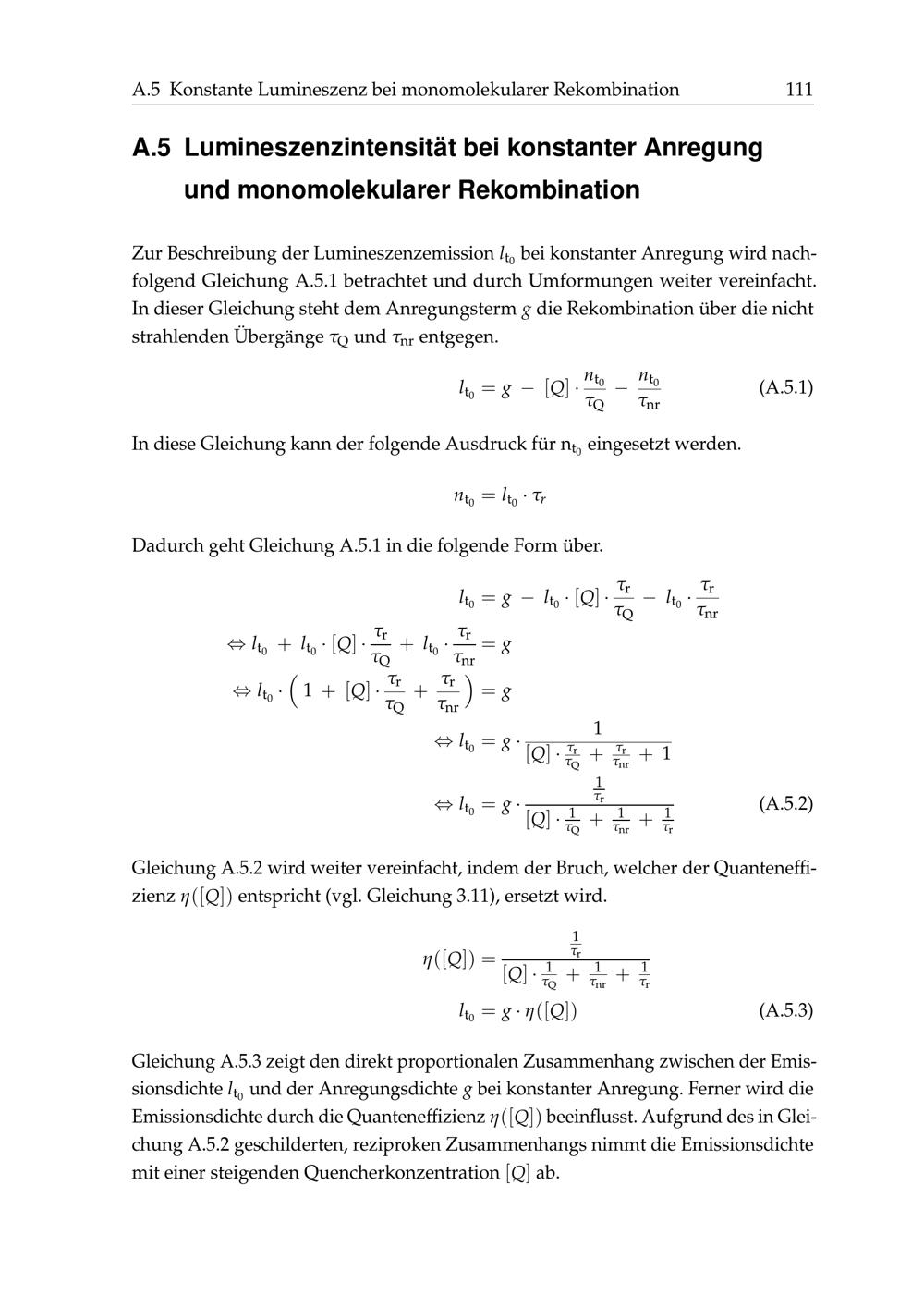 Konstante Lumineszenz bei monomolekularer Rekombination