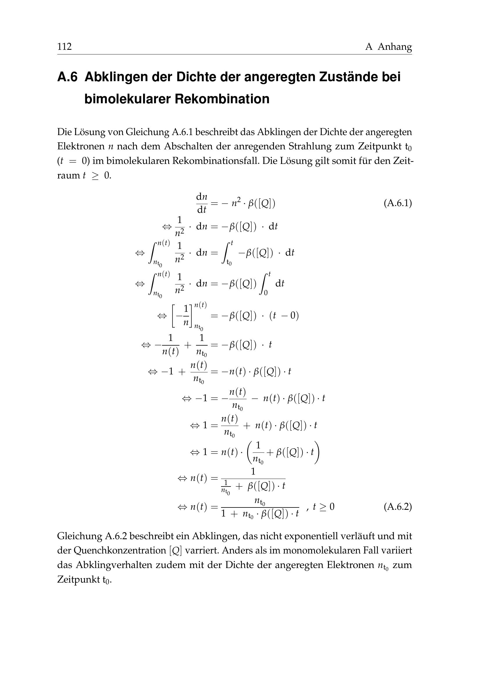 Abklingen angeregter Zustände bei bimolekularer Rekombination