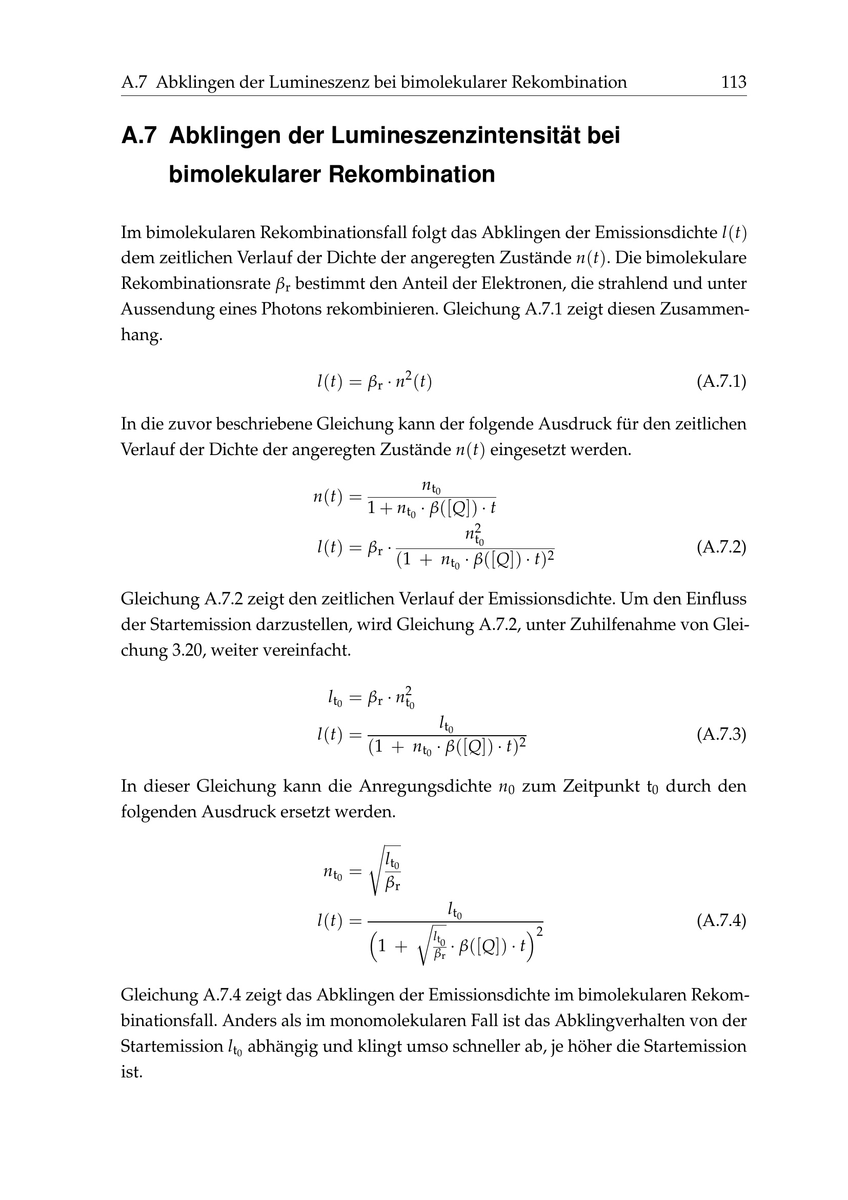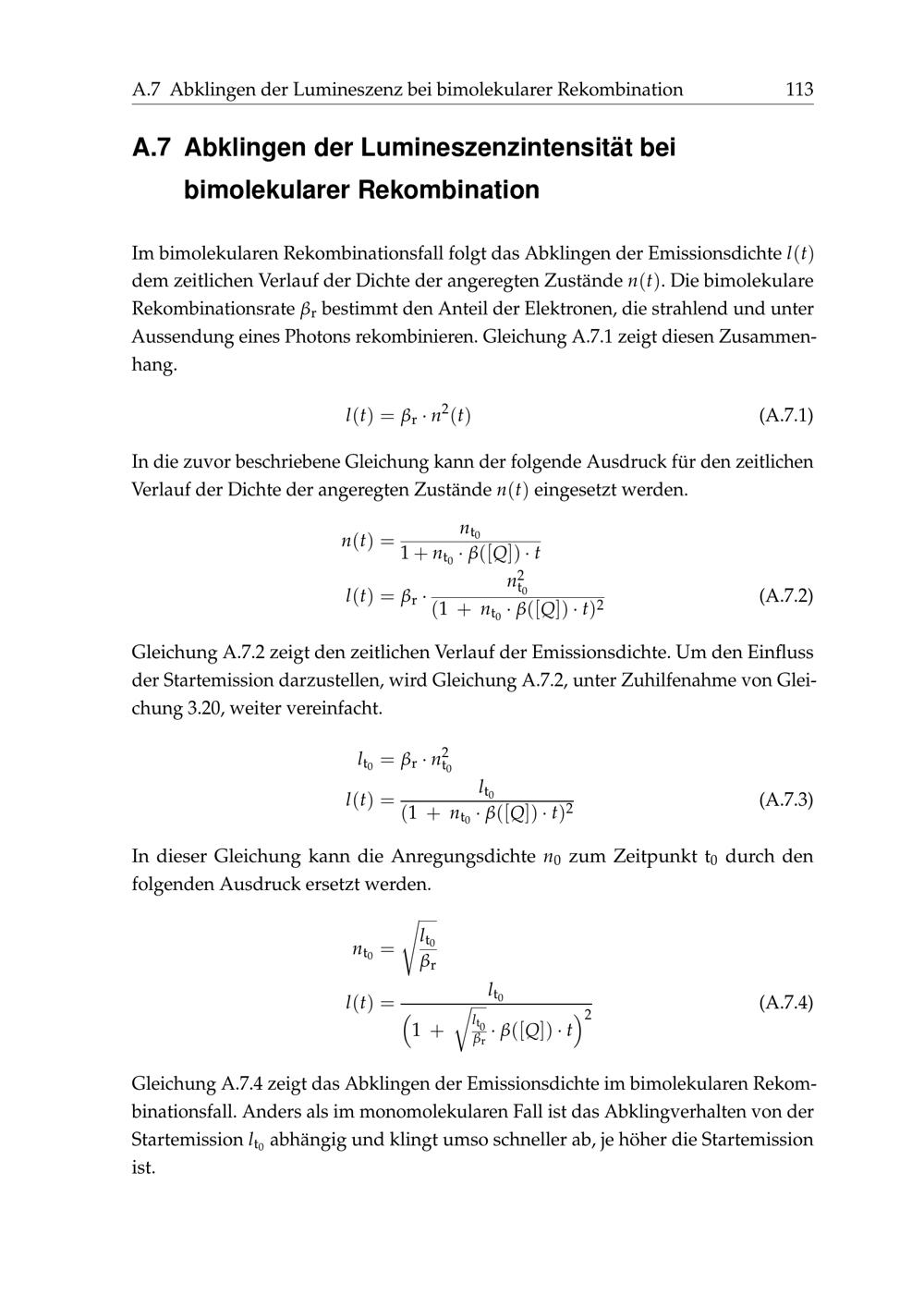 Abklingen der Lumineszenz bei bimolekularer Rekombination