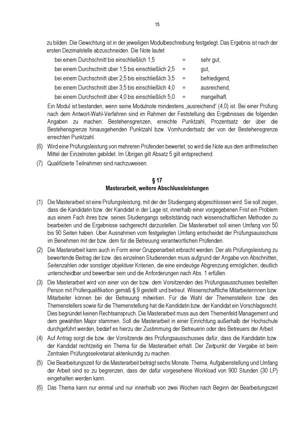 § 17 Masterarbeit, weitere Abschlussleistungen