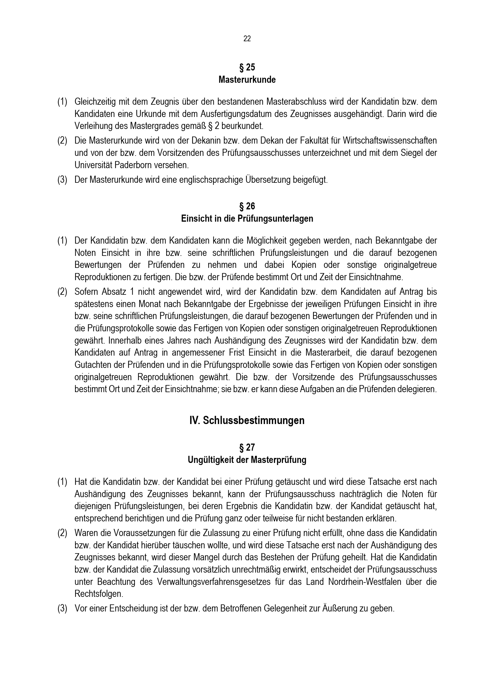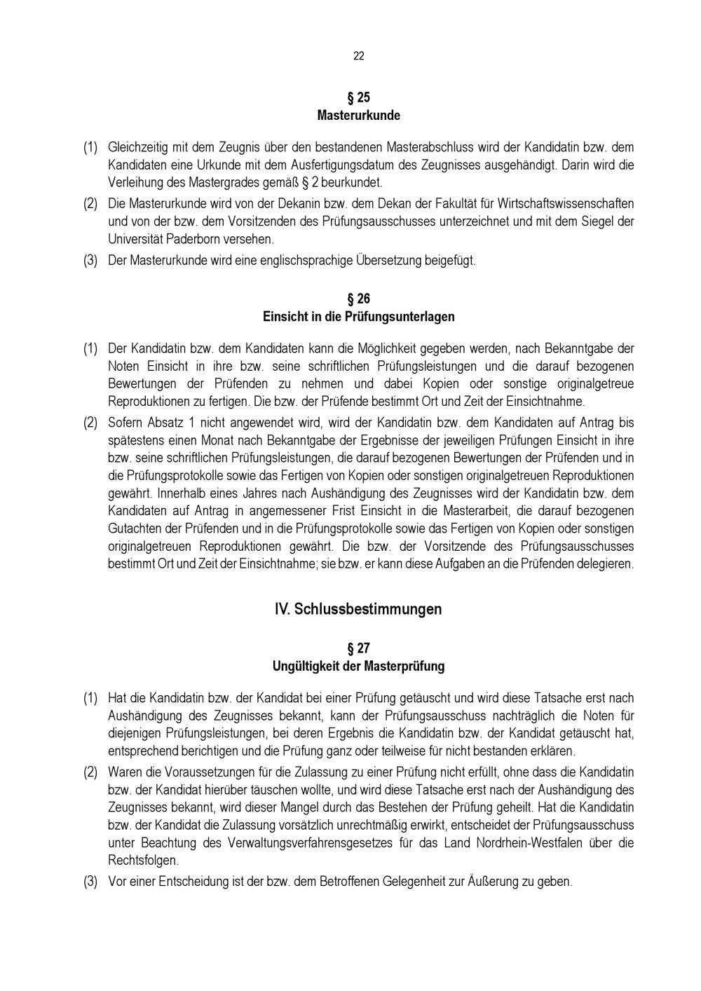 Prüfungsordnung für den Masterstudiengang Management der Fakultät für Wirtschaftswissenschaften an der Universität Paderborn : vom 30. Juni 2021