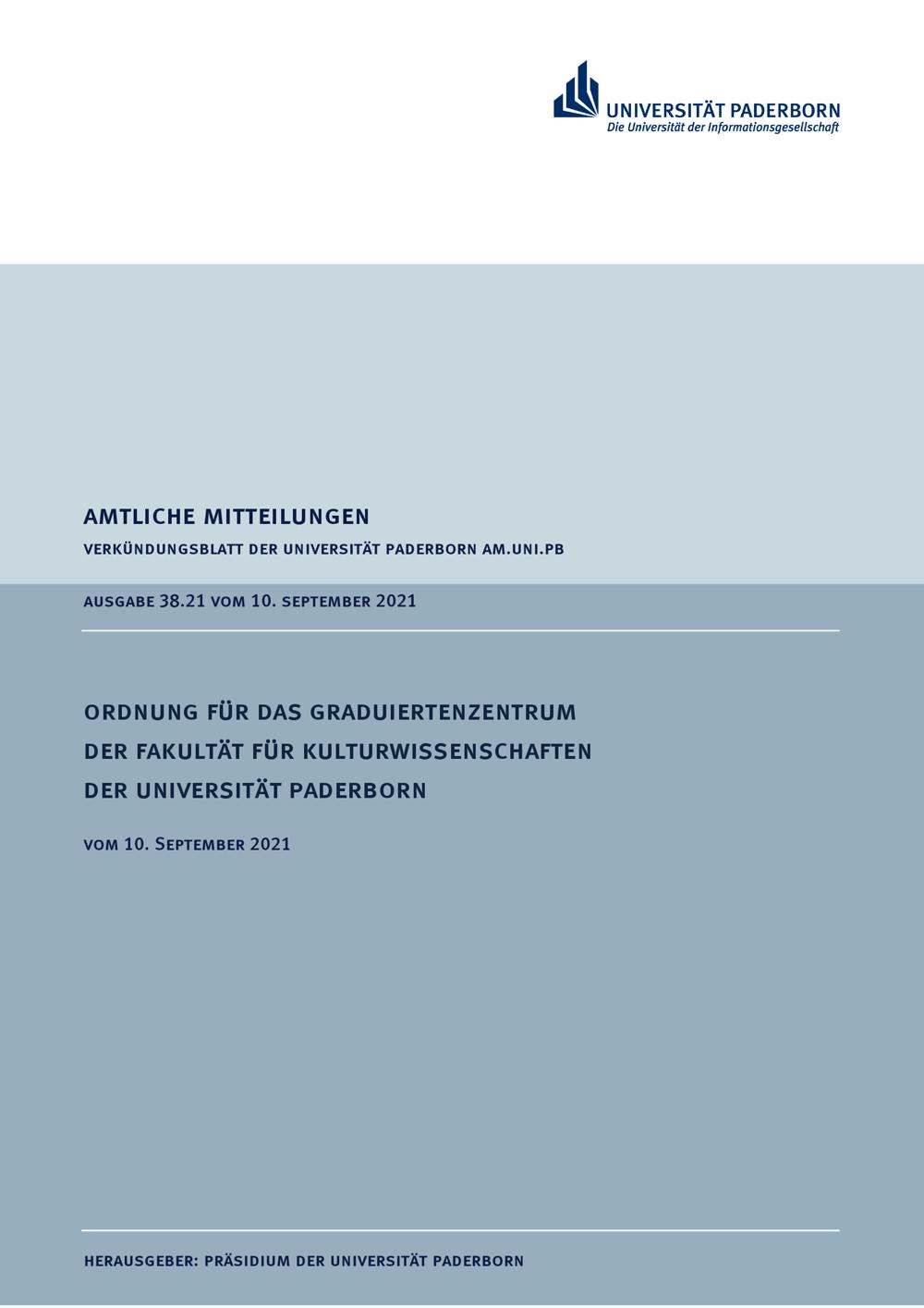 Ordnung für das Graduiertenzentrum der Fakultät für Kulturwissenschaften der Universität Paderborn : vom 10. September 2021