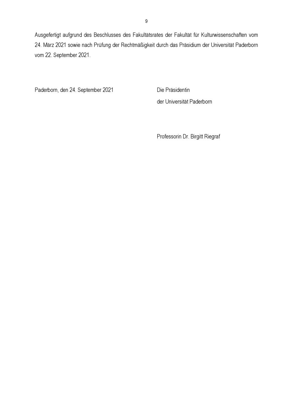 Besondere Bestimmungen der Prüfungsordnung für den Bachelorstudiengang Musikwissenschaft der Fakultät für Kulturwissenschaften an der Universität Paderborn : vom 24. September 2021