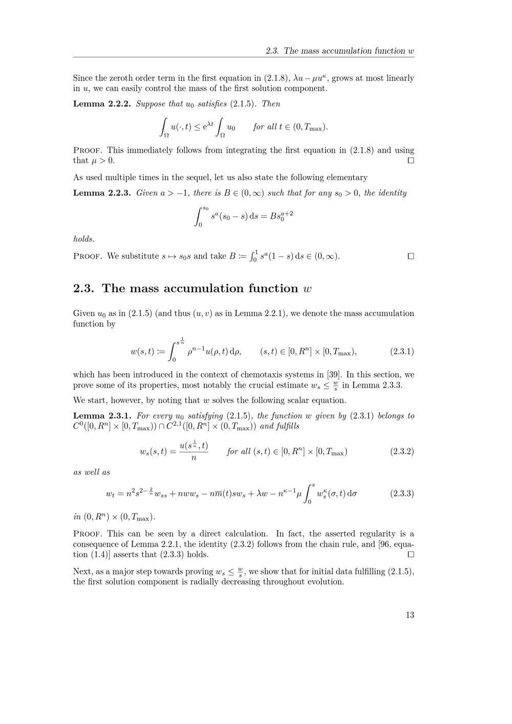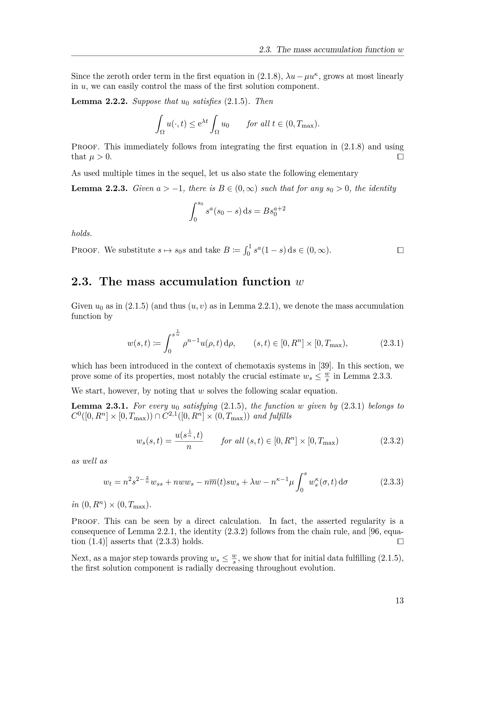 The mass accumulation function w