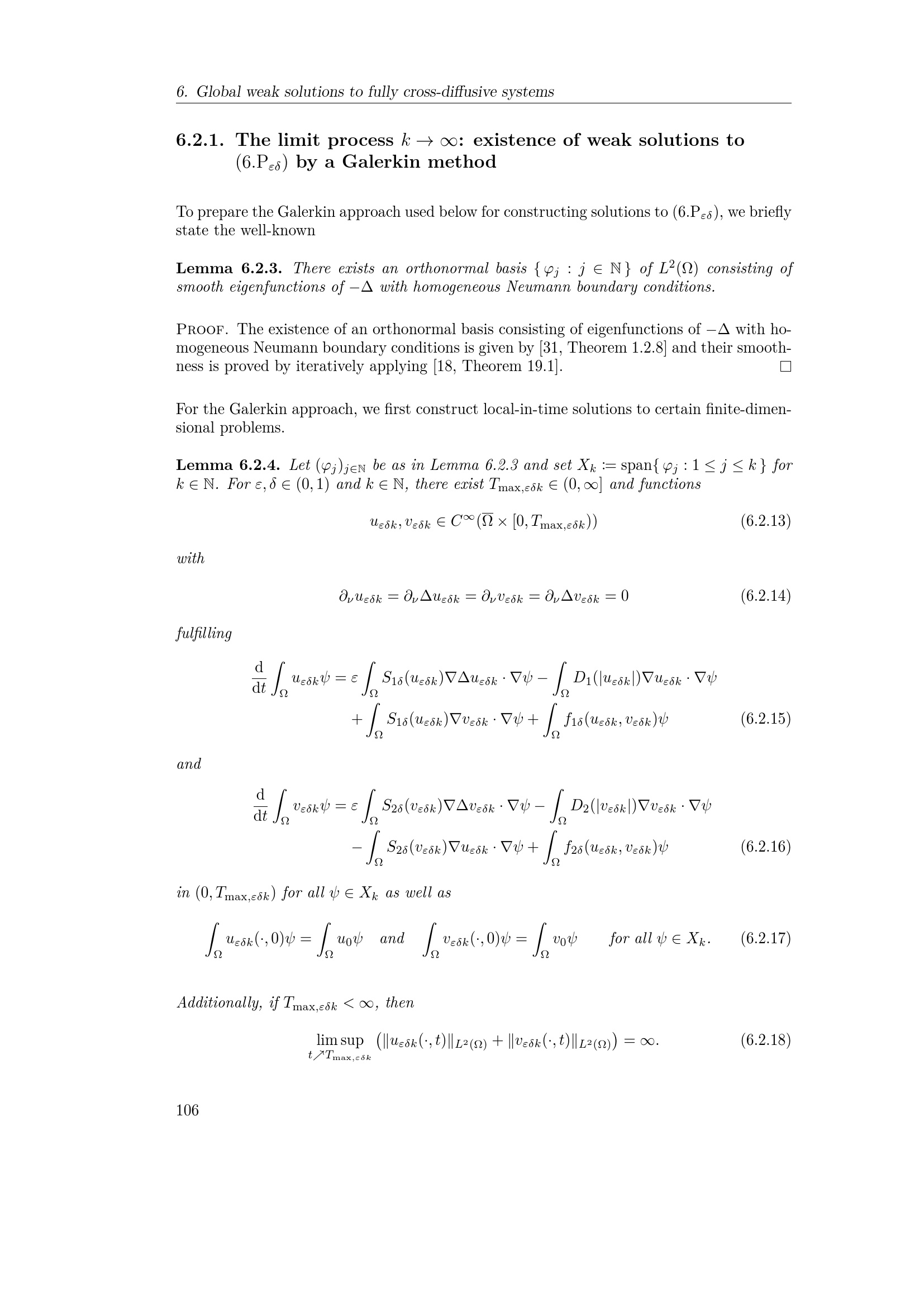 The limit process k to infty: existence of weak solutions to P_(eps delta) by a Galerkin[...]