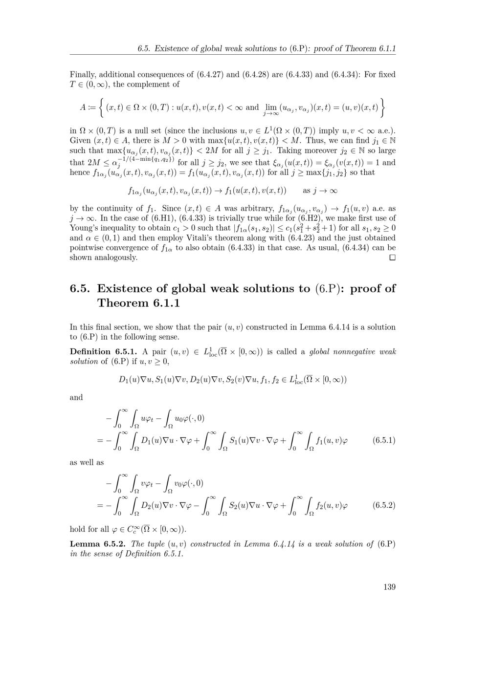 Existence of global weak solutions to (6.P): proof of Theorem 6.1.1