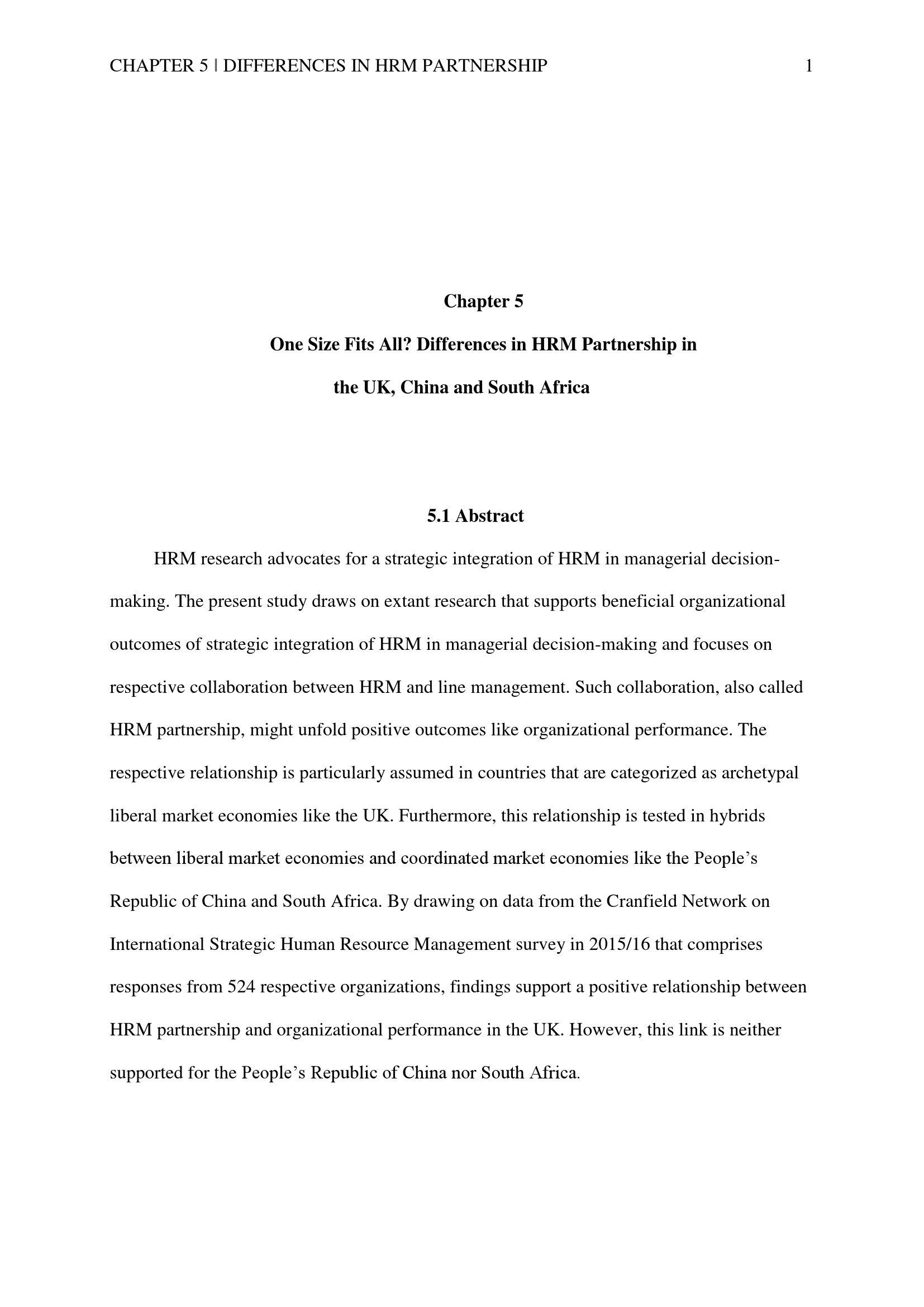 One size fits all? Differences in HRM partnership in the UK, China and South Africa / Bernhard Wach