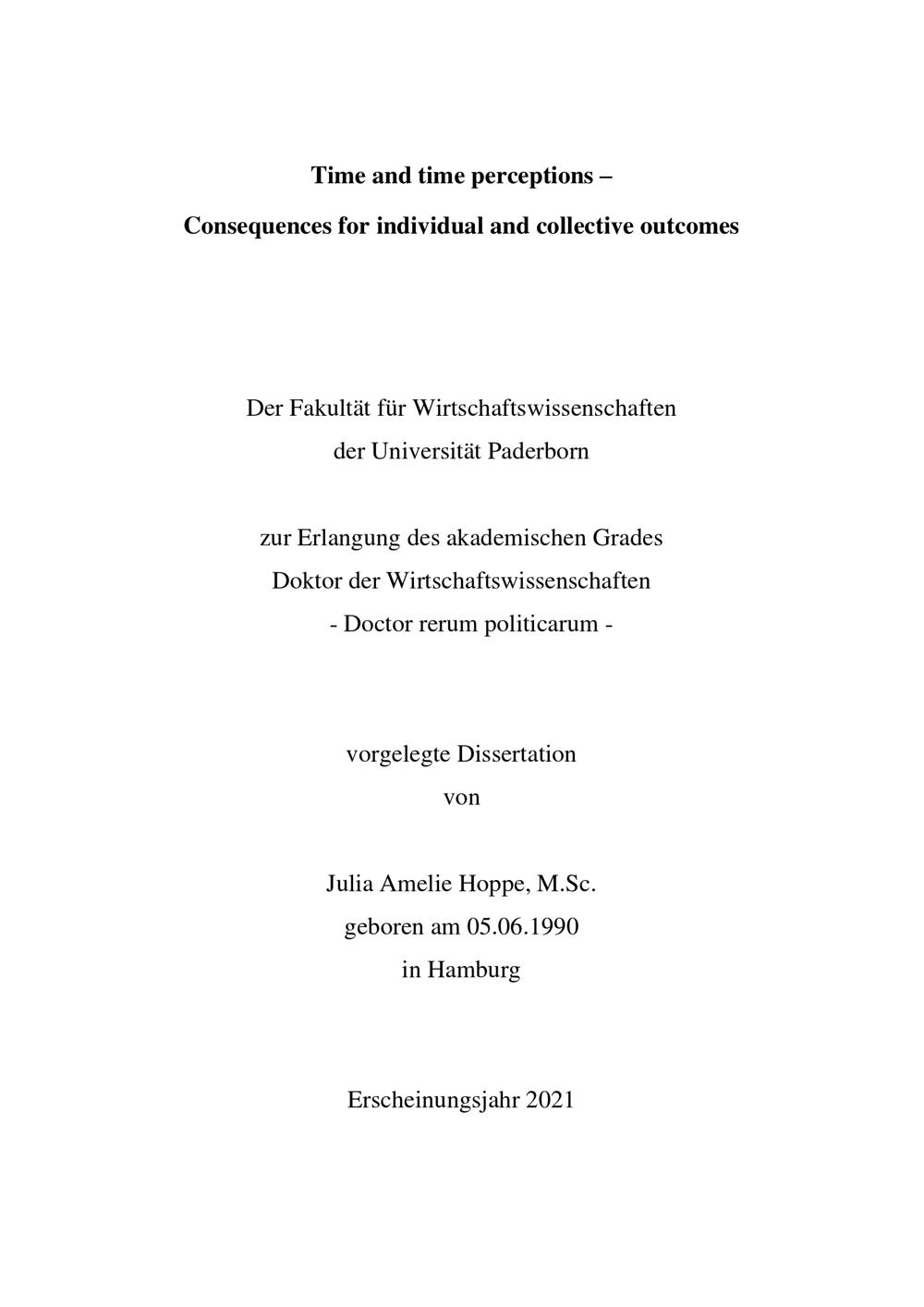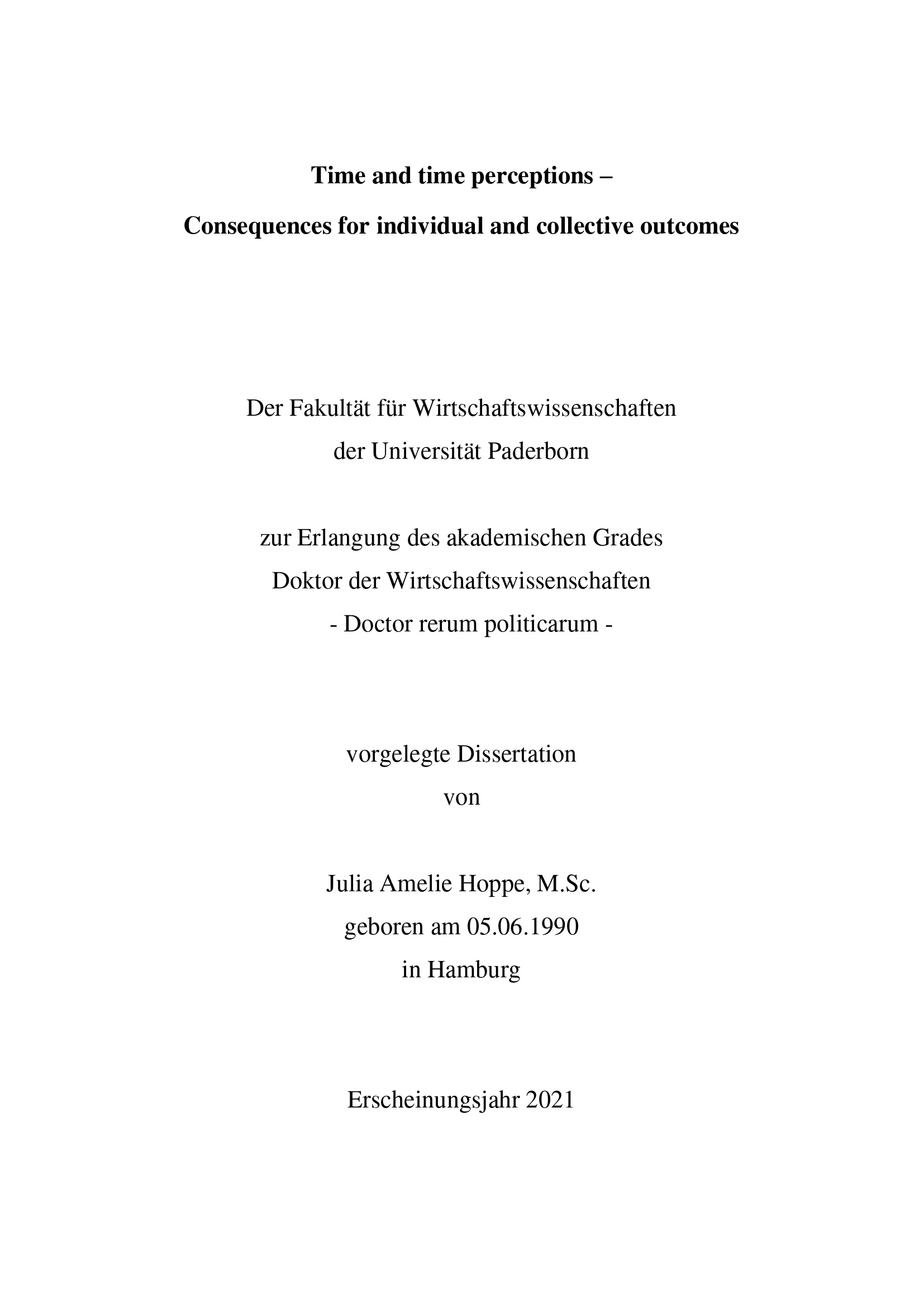 Zeit und Zeitwahrnehmungen - Konsequenzen für individuelle und kollektive Ergebnisse / von Julia Amelie Hoppe, M.Sc.