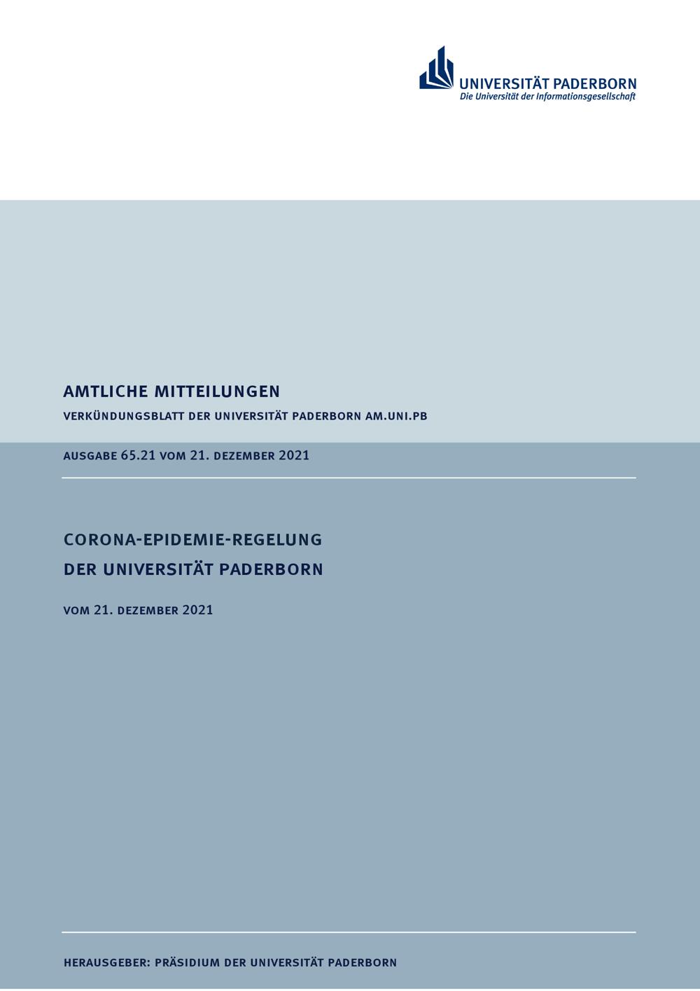 Corona-Epidemie-Regelung der Universität Paderborn : vom 21. Dezember 2021