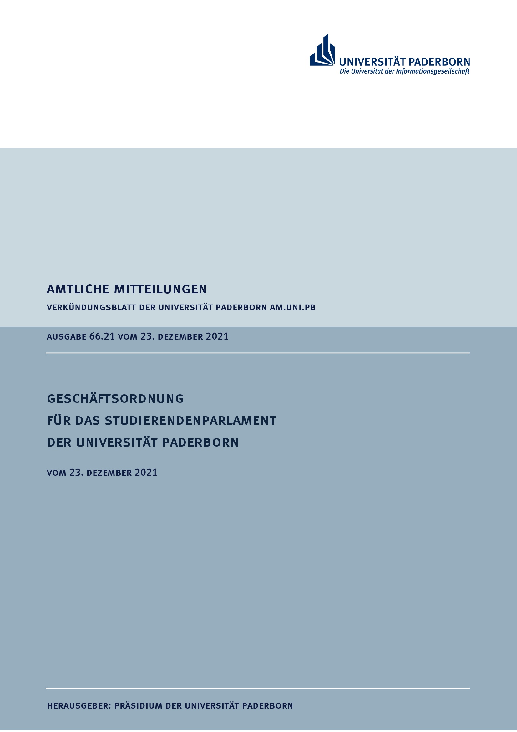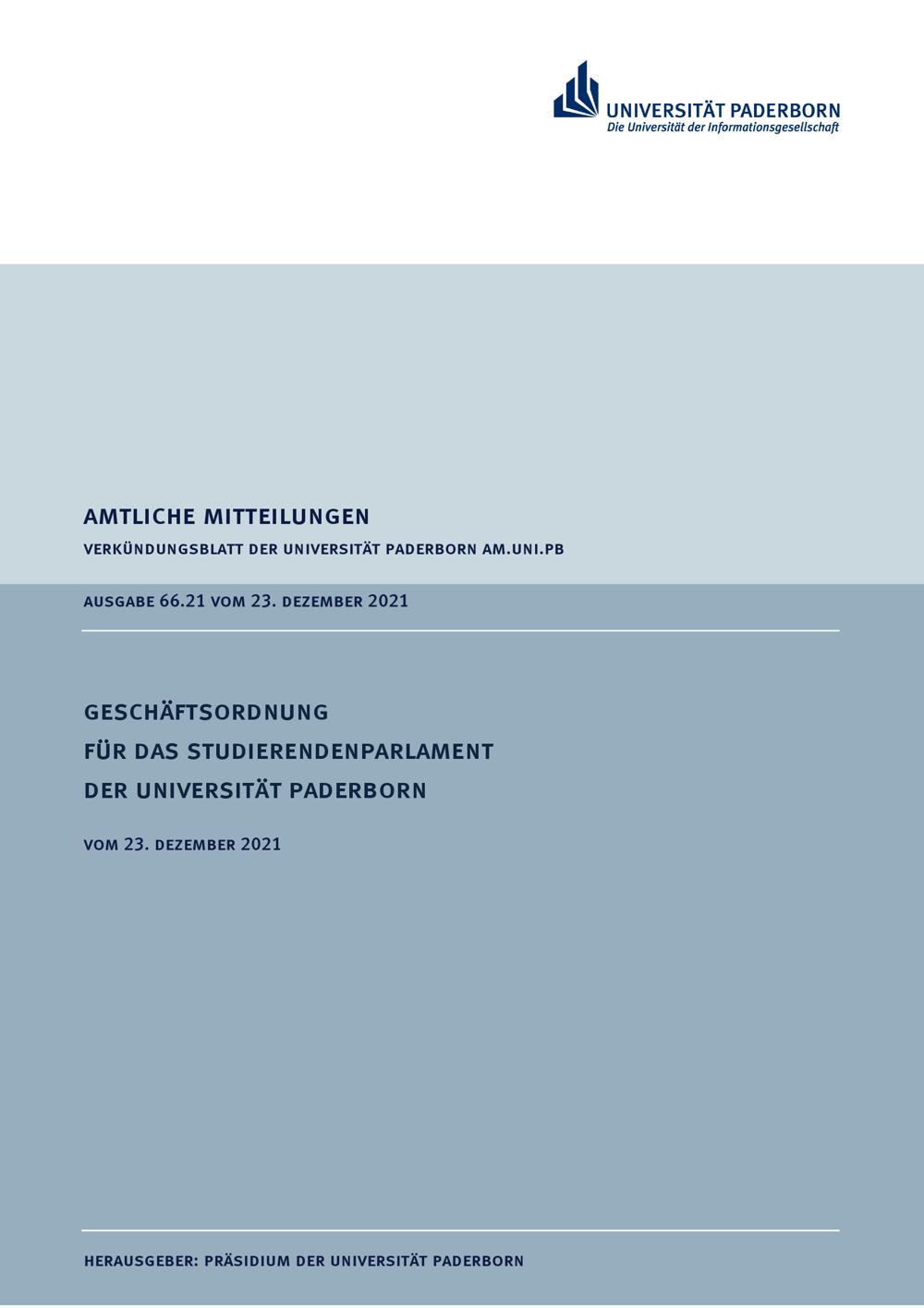 Geschäftsordnung für das Studierendenparlament der Universität Paderborn : vom 23. Dezember 2021