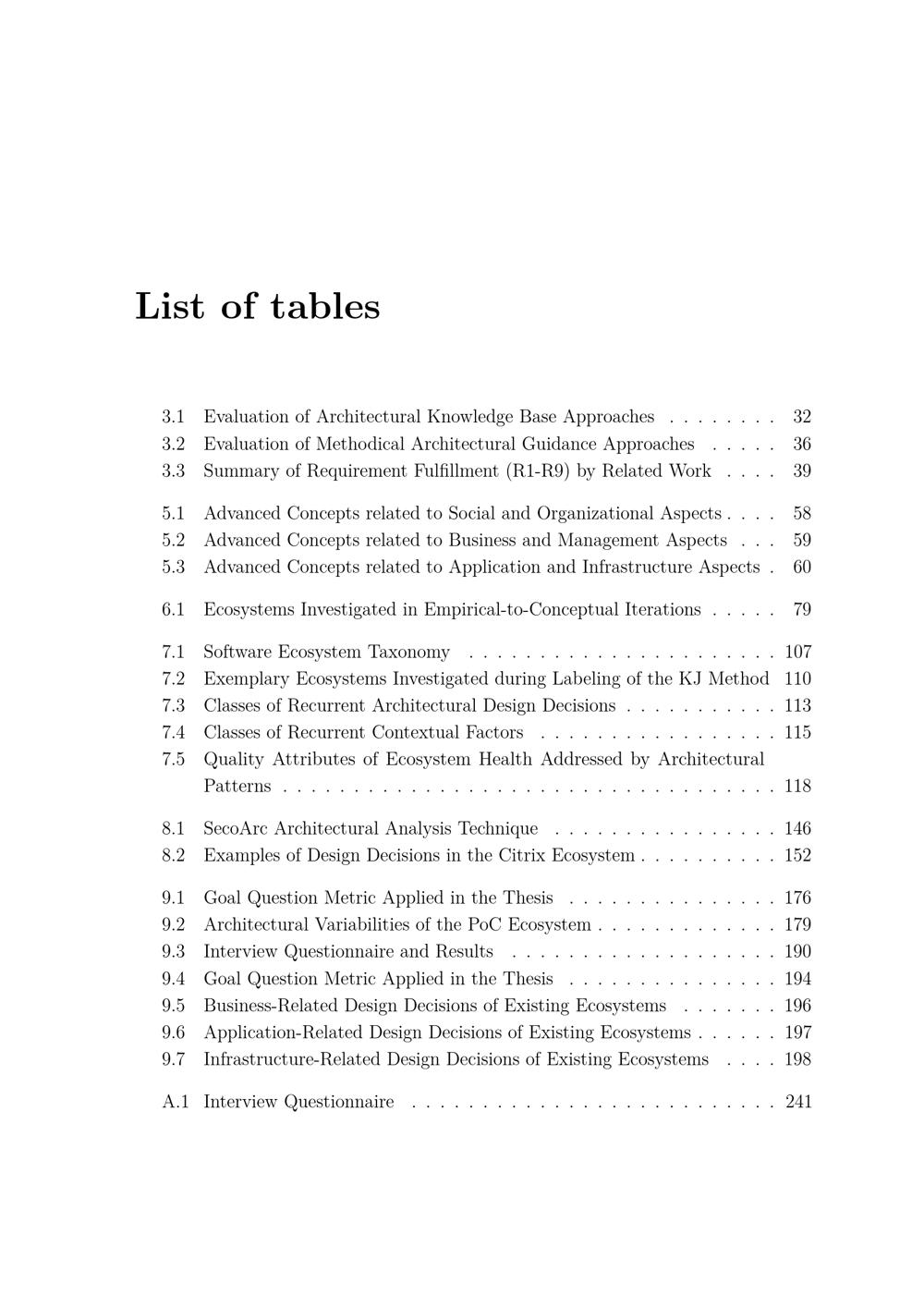 List of tables