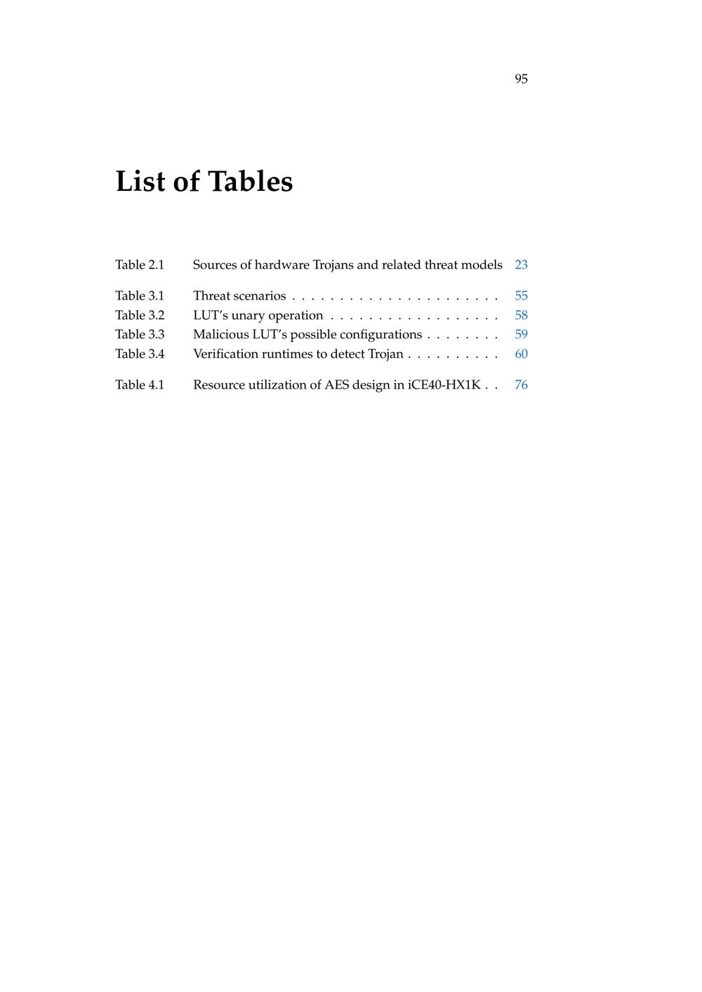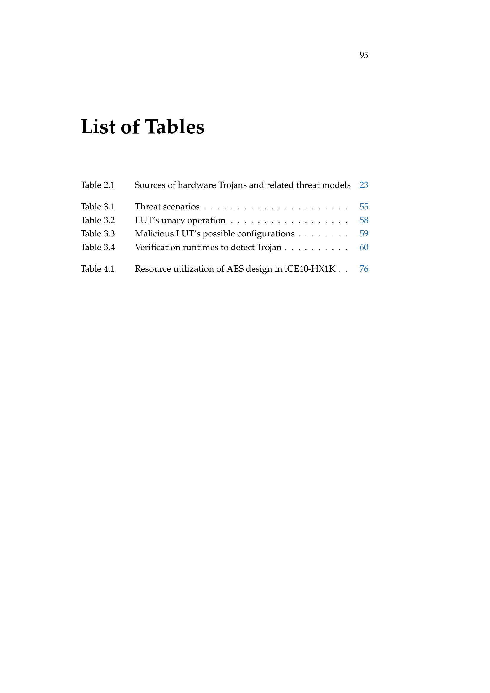List of Tables