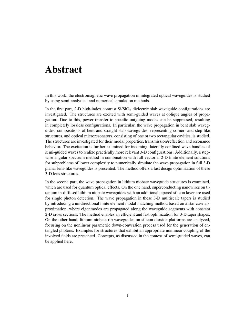 Semi-guided waves in integrated optical waveguide structures / von M. Sc. Lena Ebers ; Erster Gutachter: Prof. Dr. Jens Förstner, Zweiter Gutachter: Prof. Dr. Carsten Rockstuhl