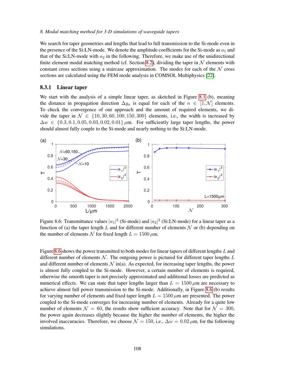 Modal matching method for 3-D simulations of waveguide tapers