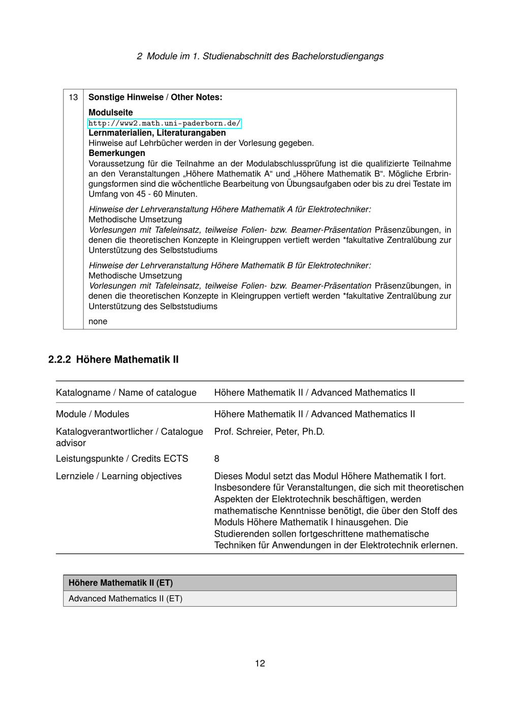 Besondere Bestimmungen der Prüfungsordnung für den Bachelorstudiengang Elektrotechnik der Fakultät für Elektrotechnik, Informatik und Mathematik an der Universität Paderborn : vom 31. März 2022