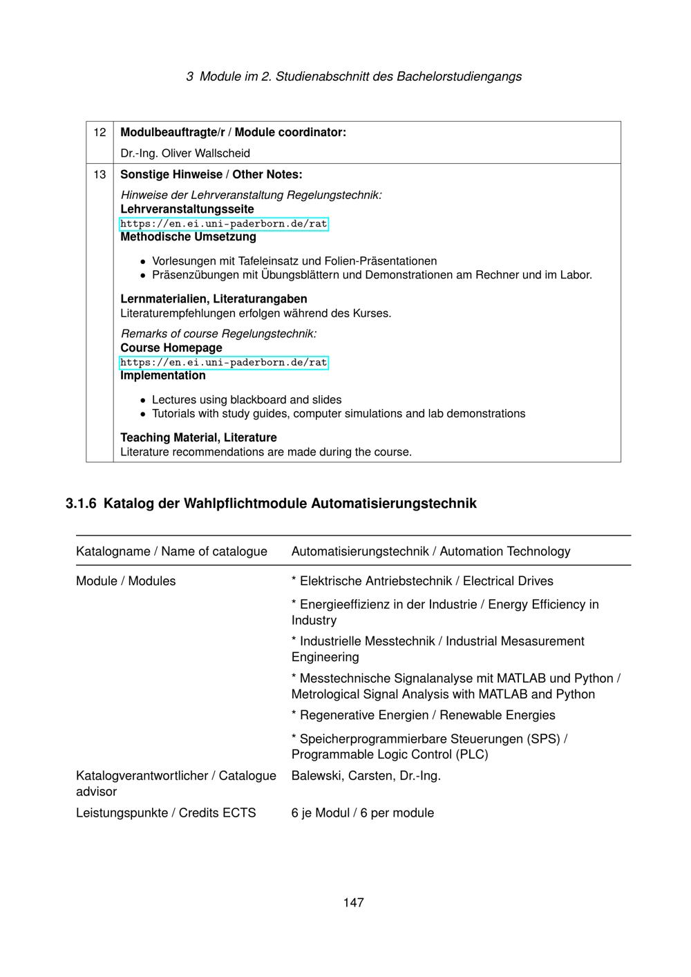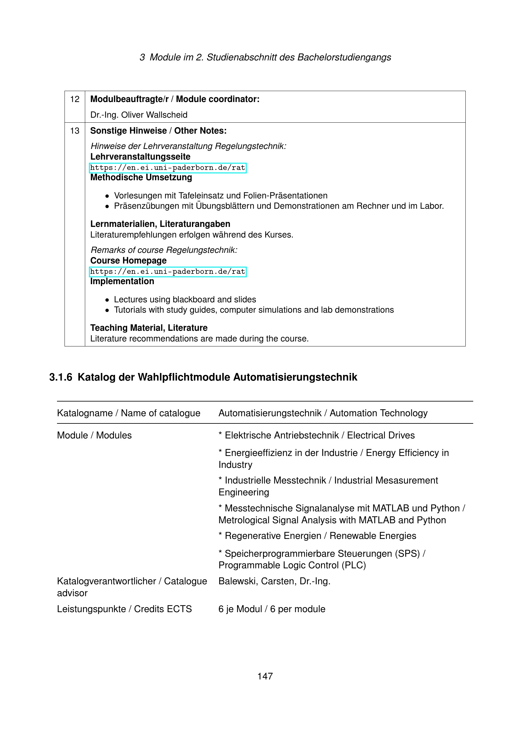 Katalog der Wahlpflichtmodule Automatisierungstechnik