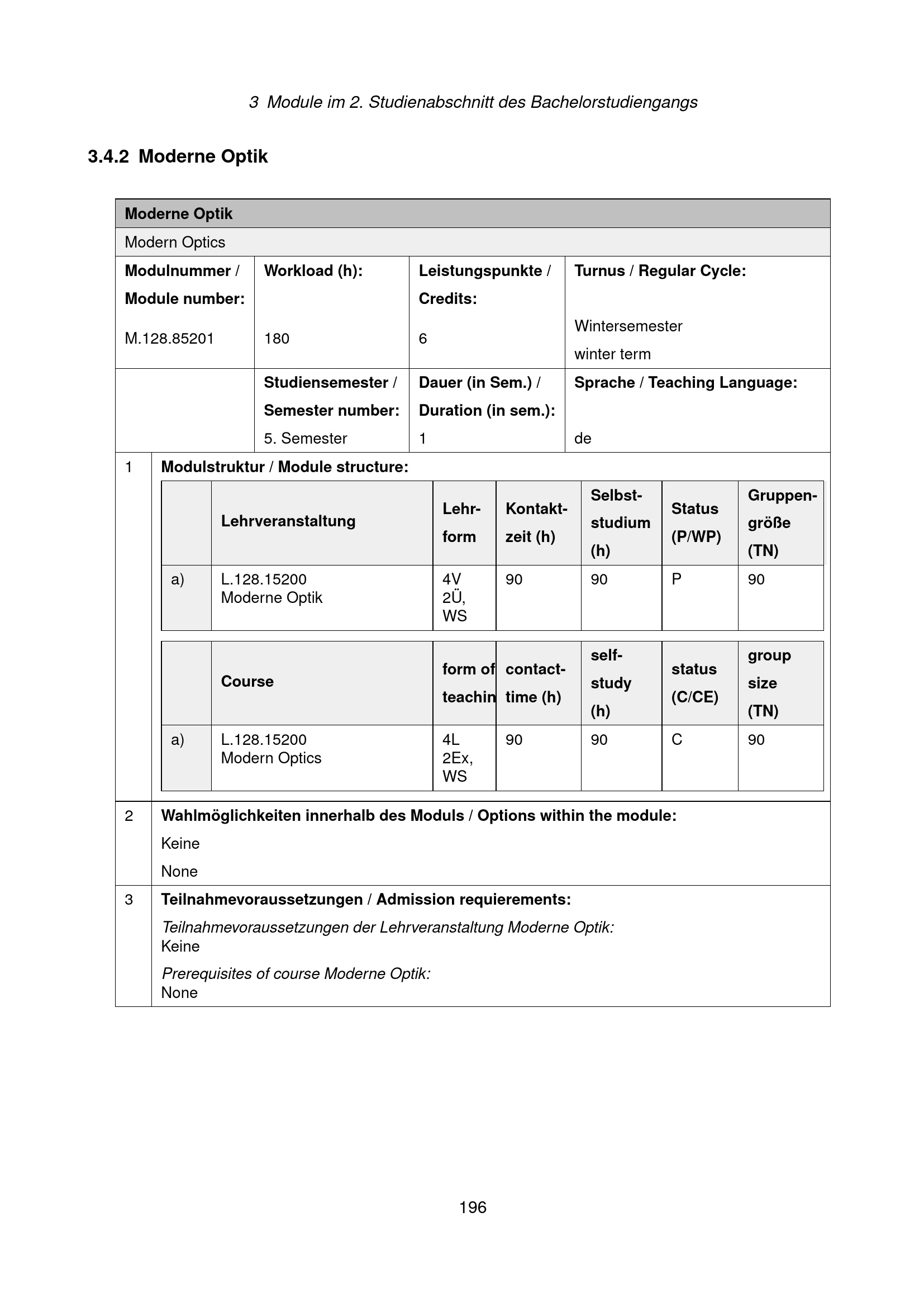 Module im 2. Studienabschnitt des Bachelorstudiengangs