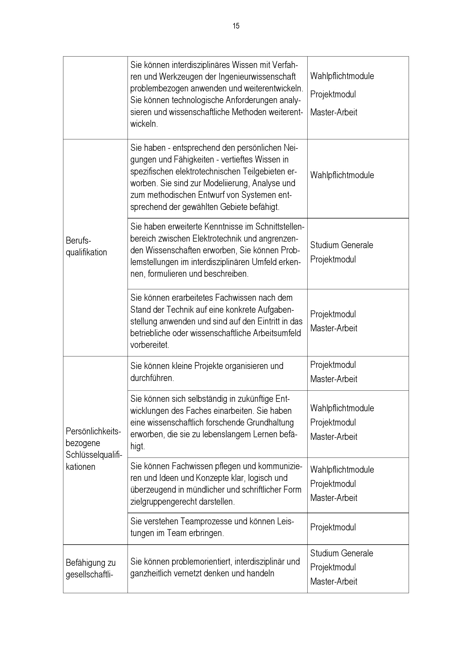 Anhang IV: Ziele-Matrix Master-Studiengang Elektrotechnik