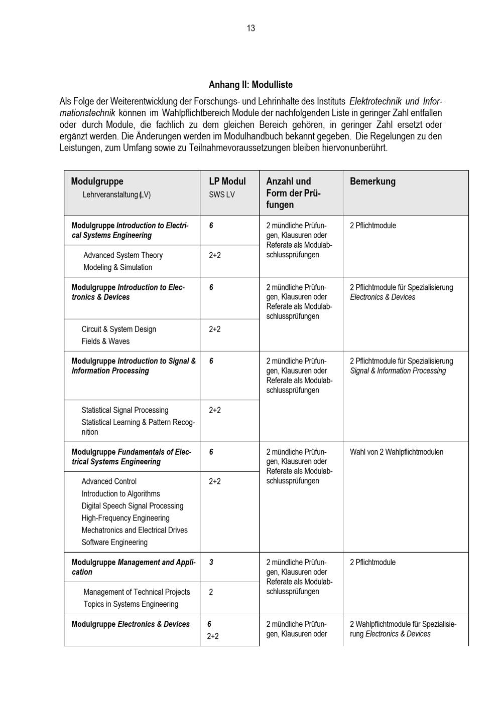 Anhang II: Modulliste