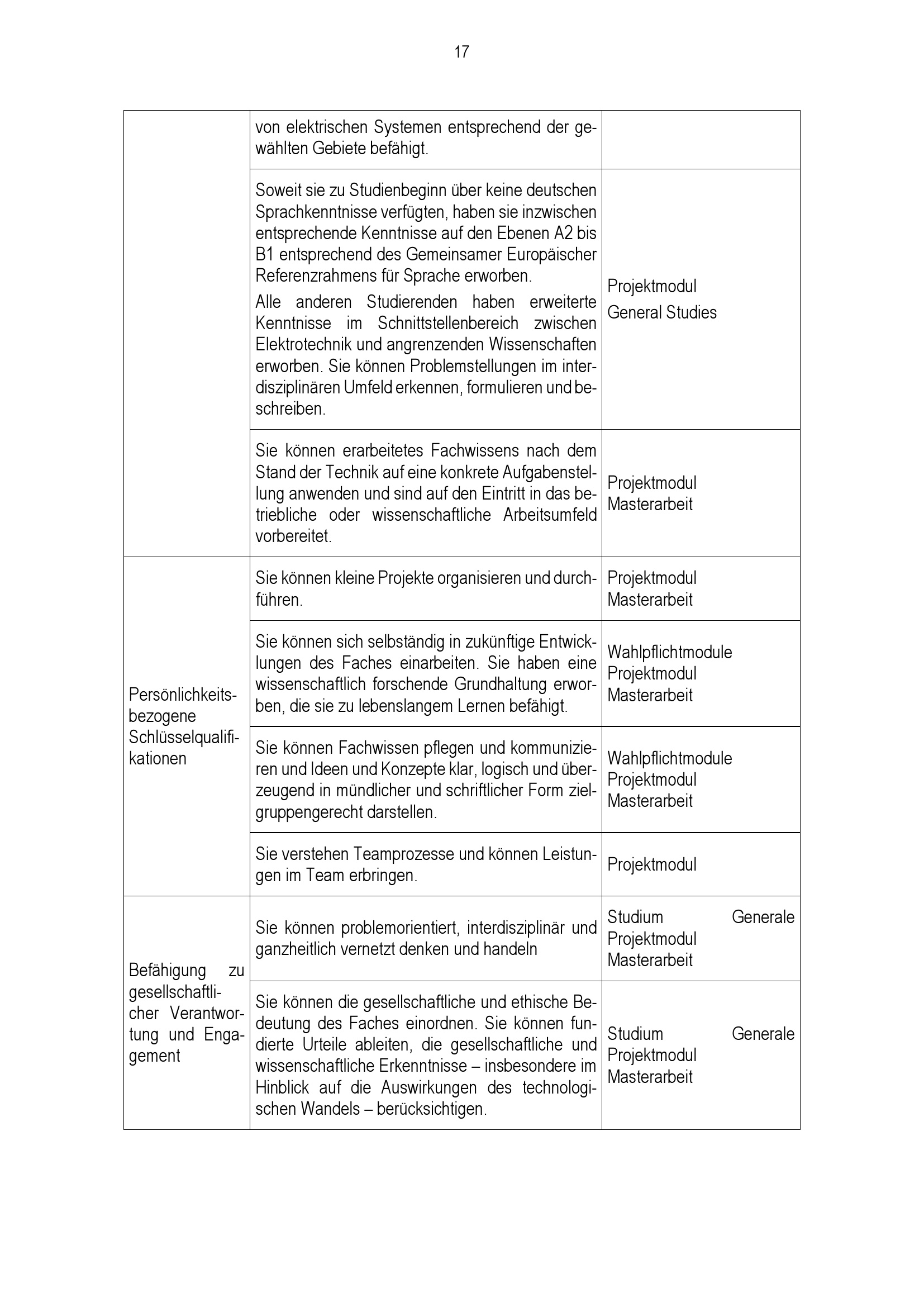 Anhang IV: Ziele-Matrix für den Master-Studiengang Electrical Systems Engineerin[...]