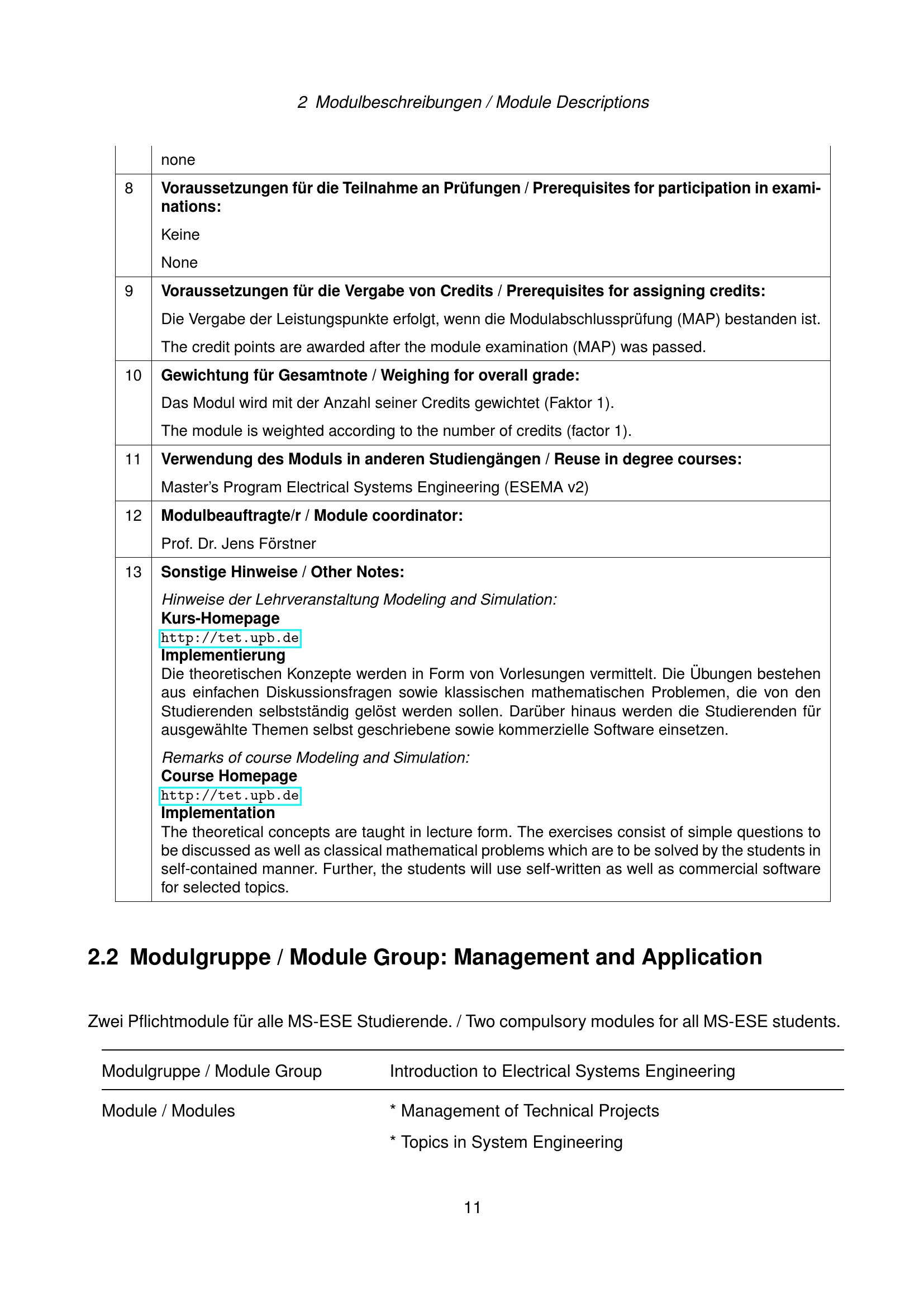 Modulgruppe / Module Group: Management and Application