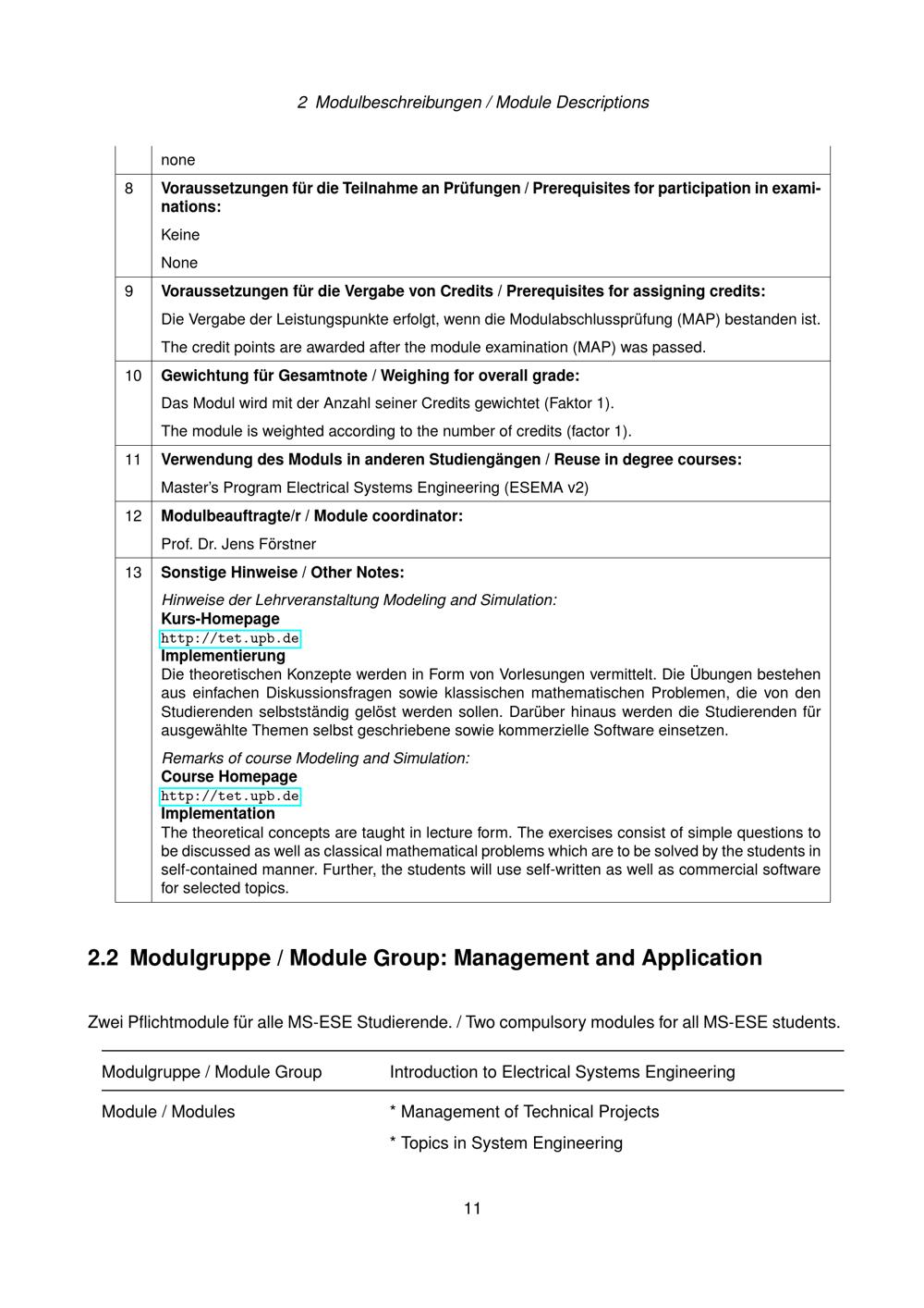 Besondere Bestimmungen der Prüfungsordnung für den Masterstudiengang Electrical Systems Engineering an der Universität Paderborn : vom 31. März 2022