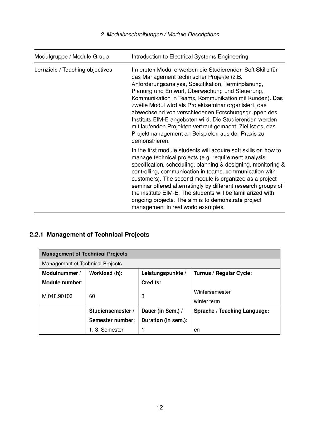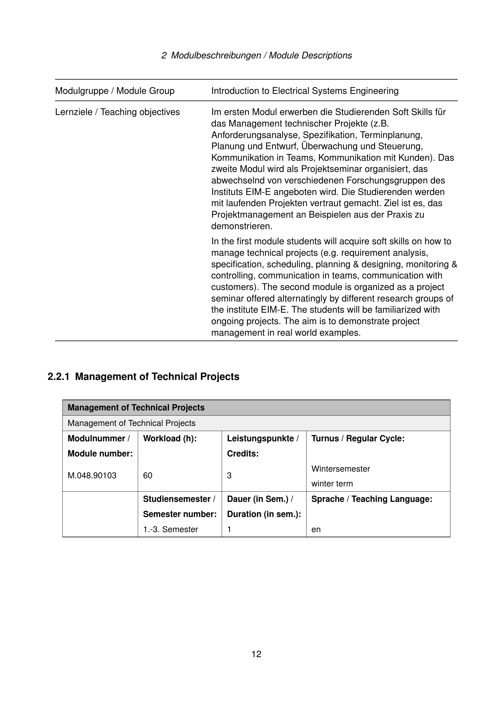 Modulbeschreibungen / Module Descriptions