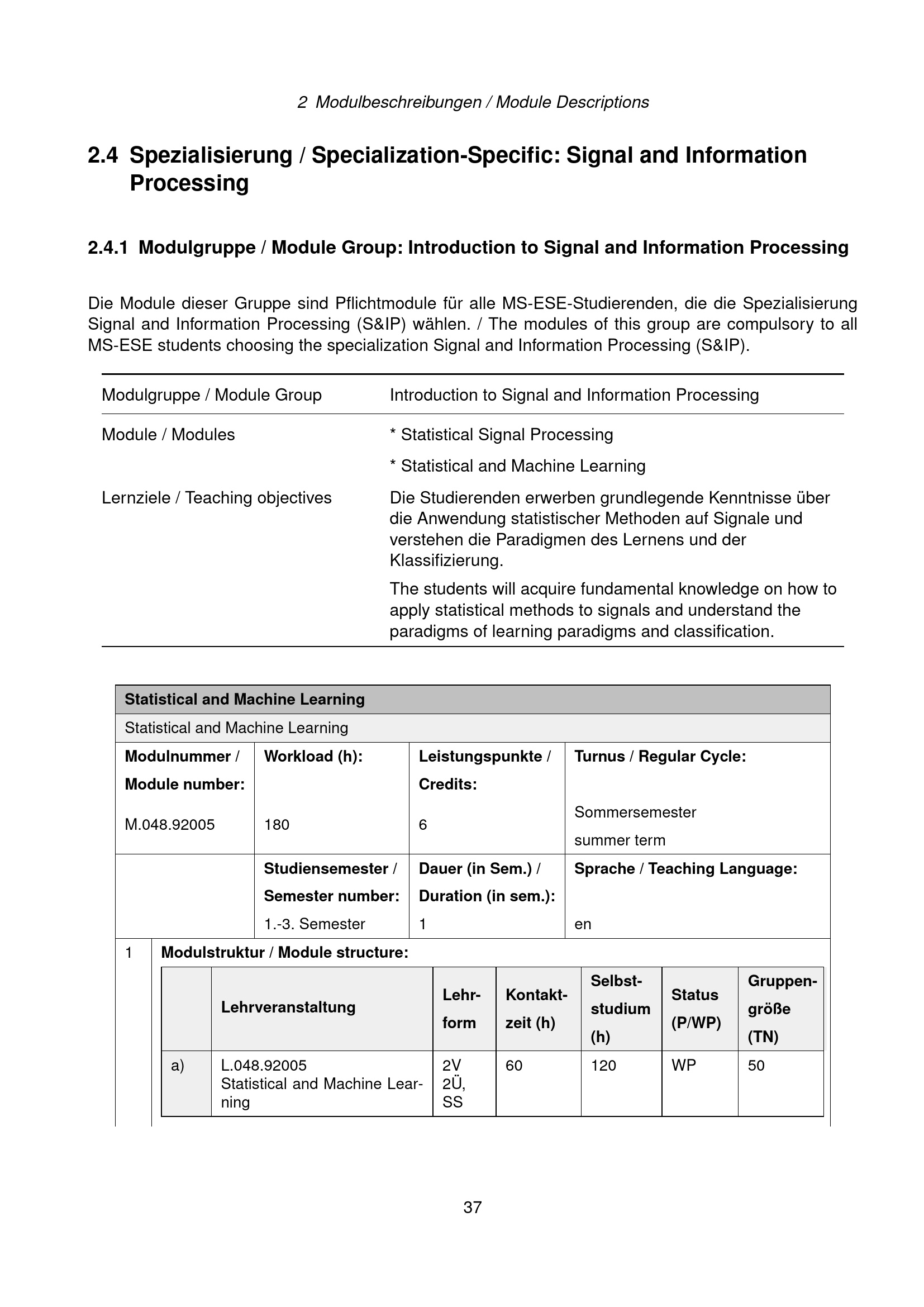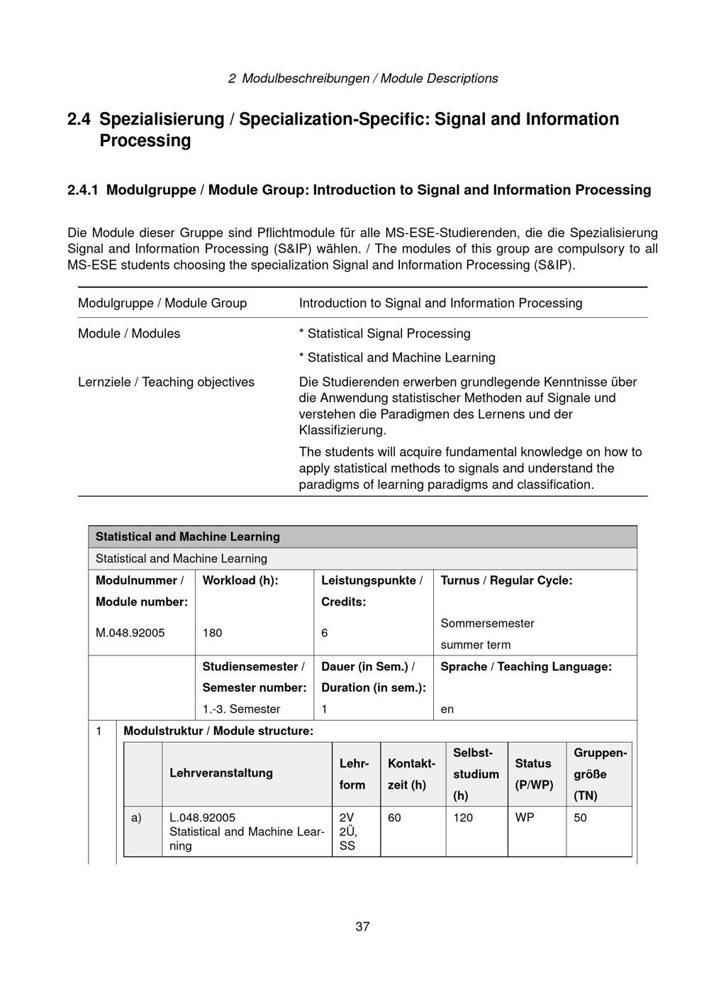 Spezialisierung / Specialization-Specific: Signal and Information Processing