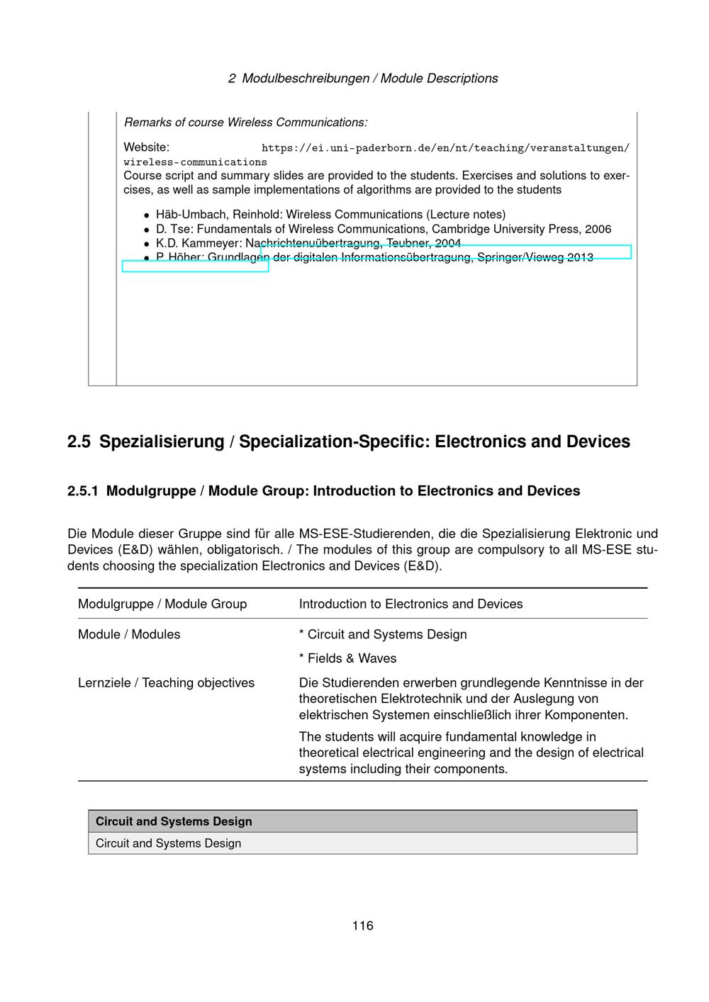 Spezialisierung / Specialization-Specific: Electronics and Devices