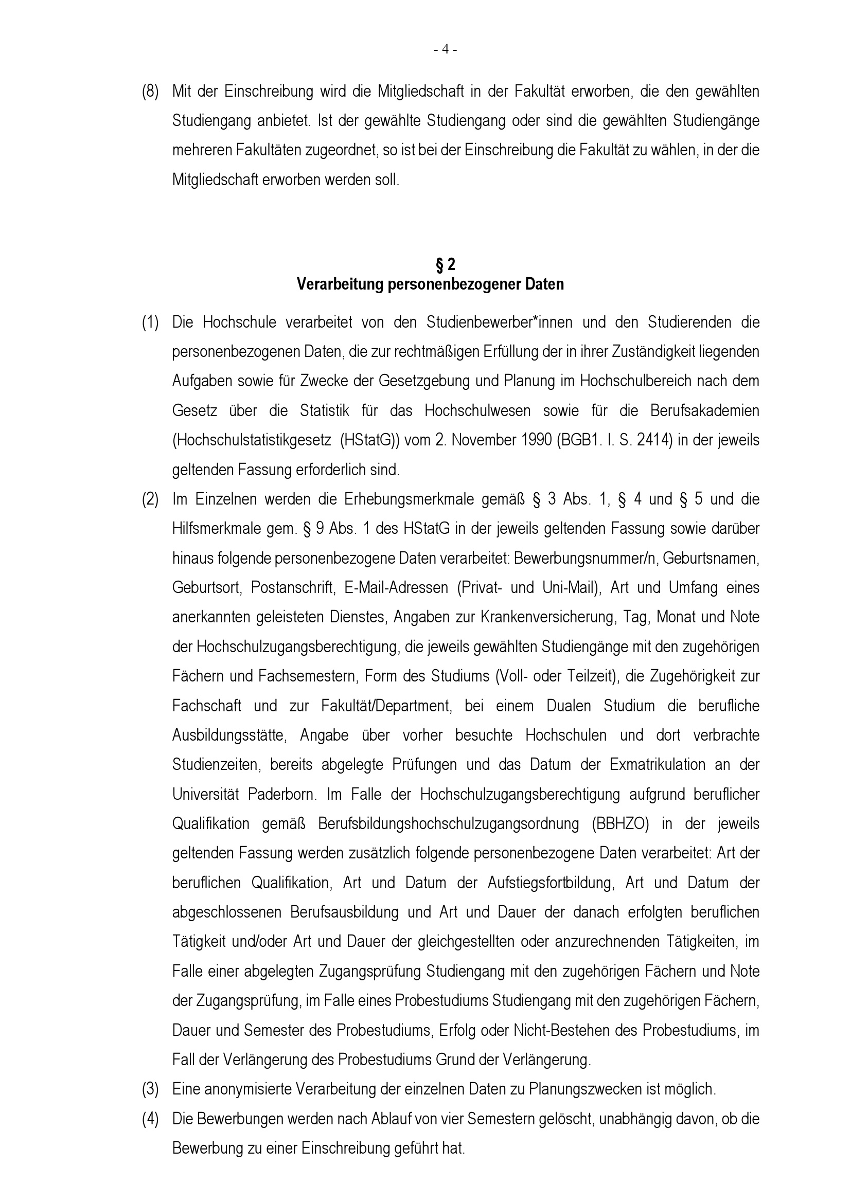 Einschreibungsordnung der Universität Paderborn