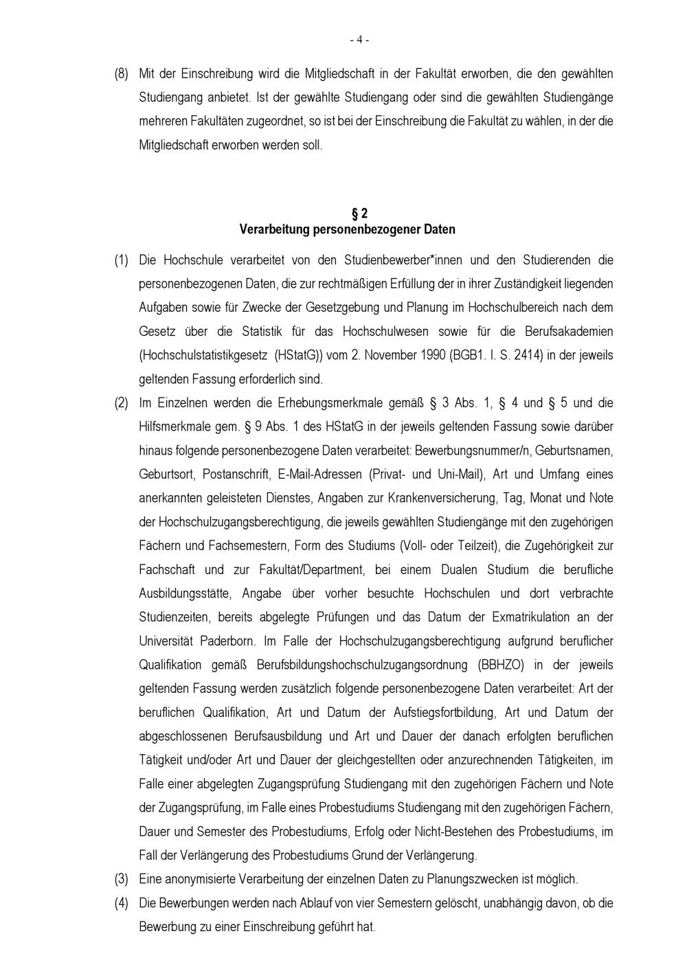 Einschreibungsordnung der Universität Paderborn : vom 8. April 2022