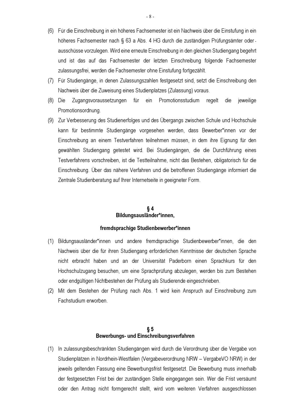 Einschreibungsordnung der Universität Paderborn