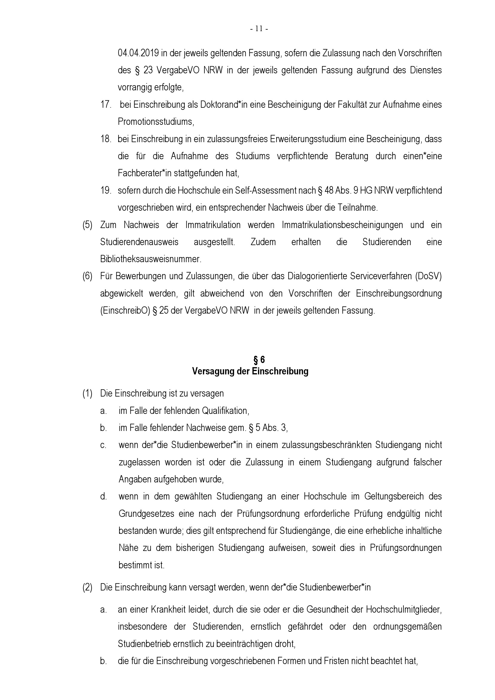 Einschreibungsordnung der Universität Paderborn : vom 8. April 2022