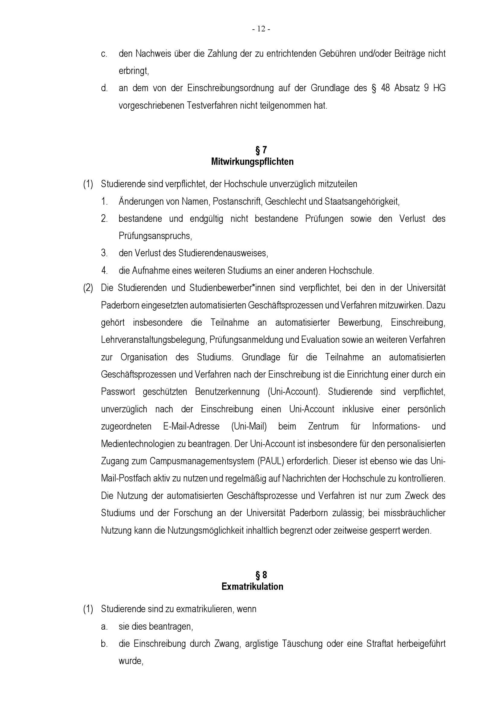 Einschreibungsordnung der Universität Paderborn : vom 8. April 2022