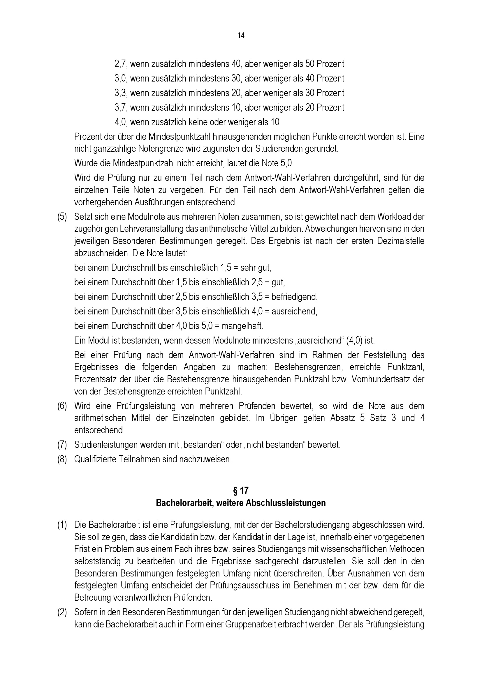 § 17 Bachelorarbeit, weitere Abschlussleistungen