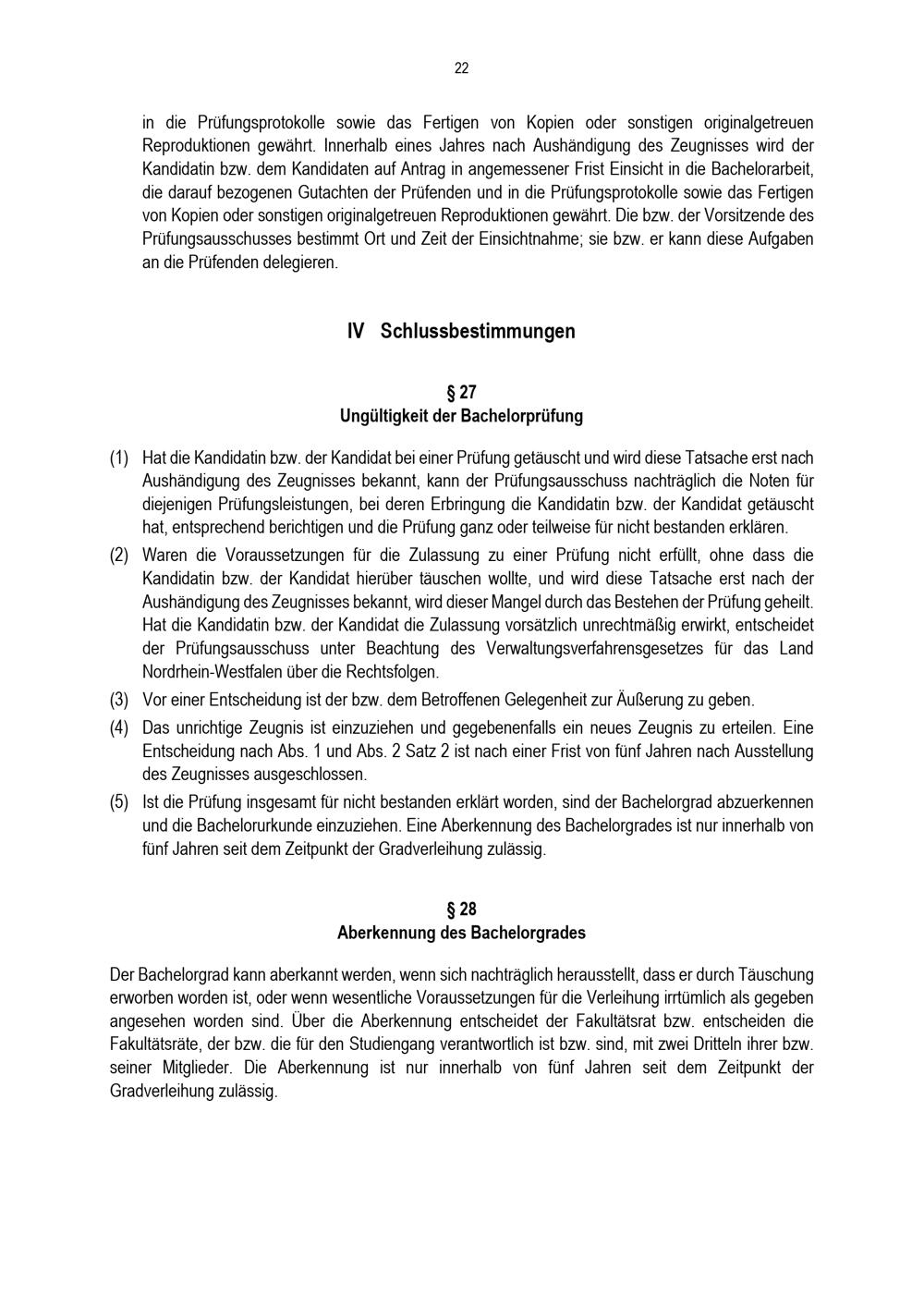 § 27 Ungültigkeit der Bachelorprüfung